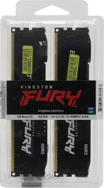 Kingston Память оперативная Kingston 8GB 1866MHz DDR3 CL10 DIMM(Kit of 2)FURYBeastBlack