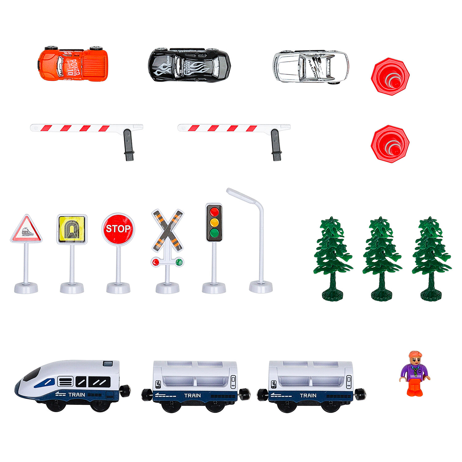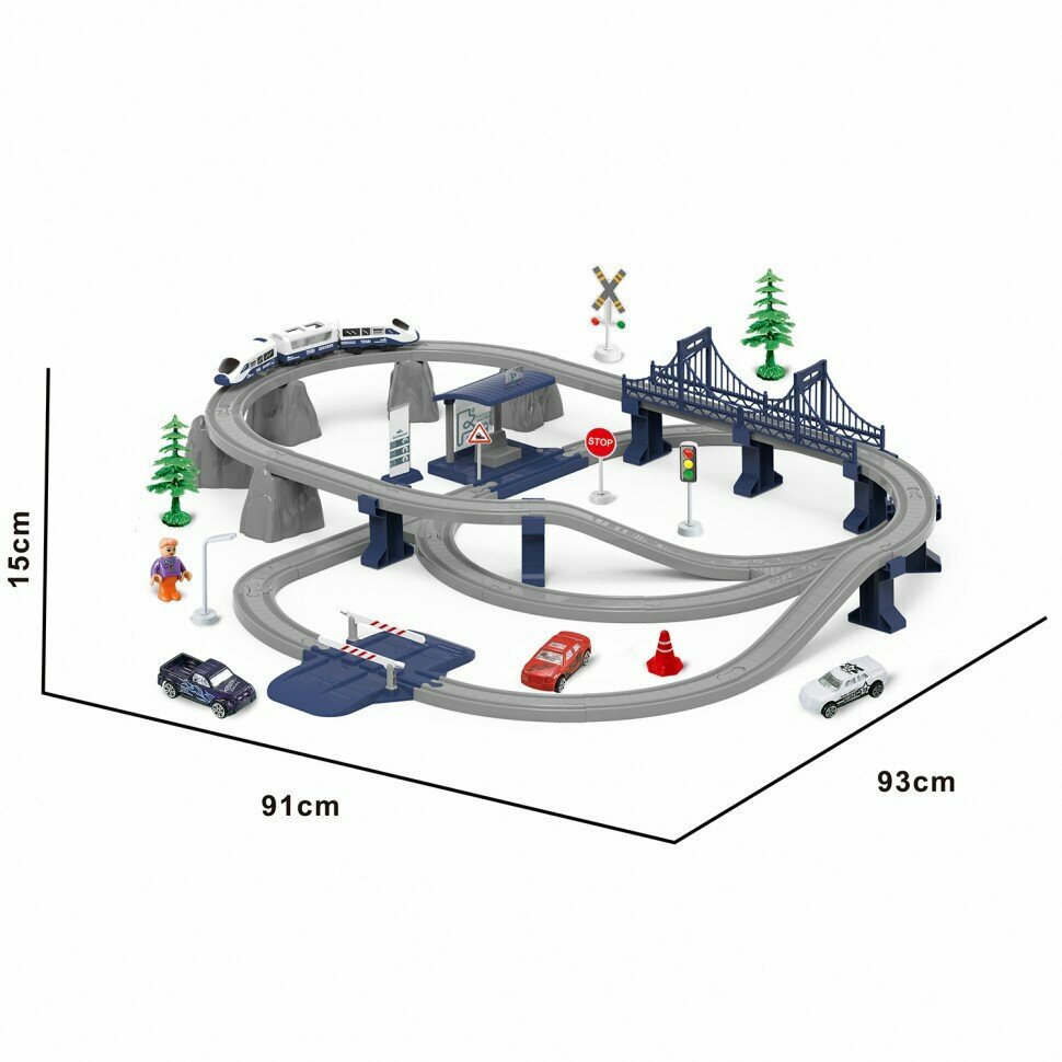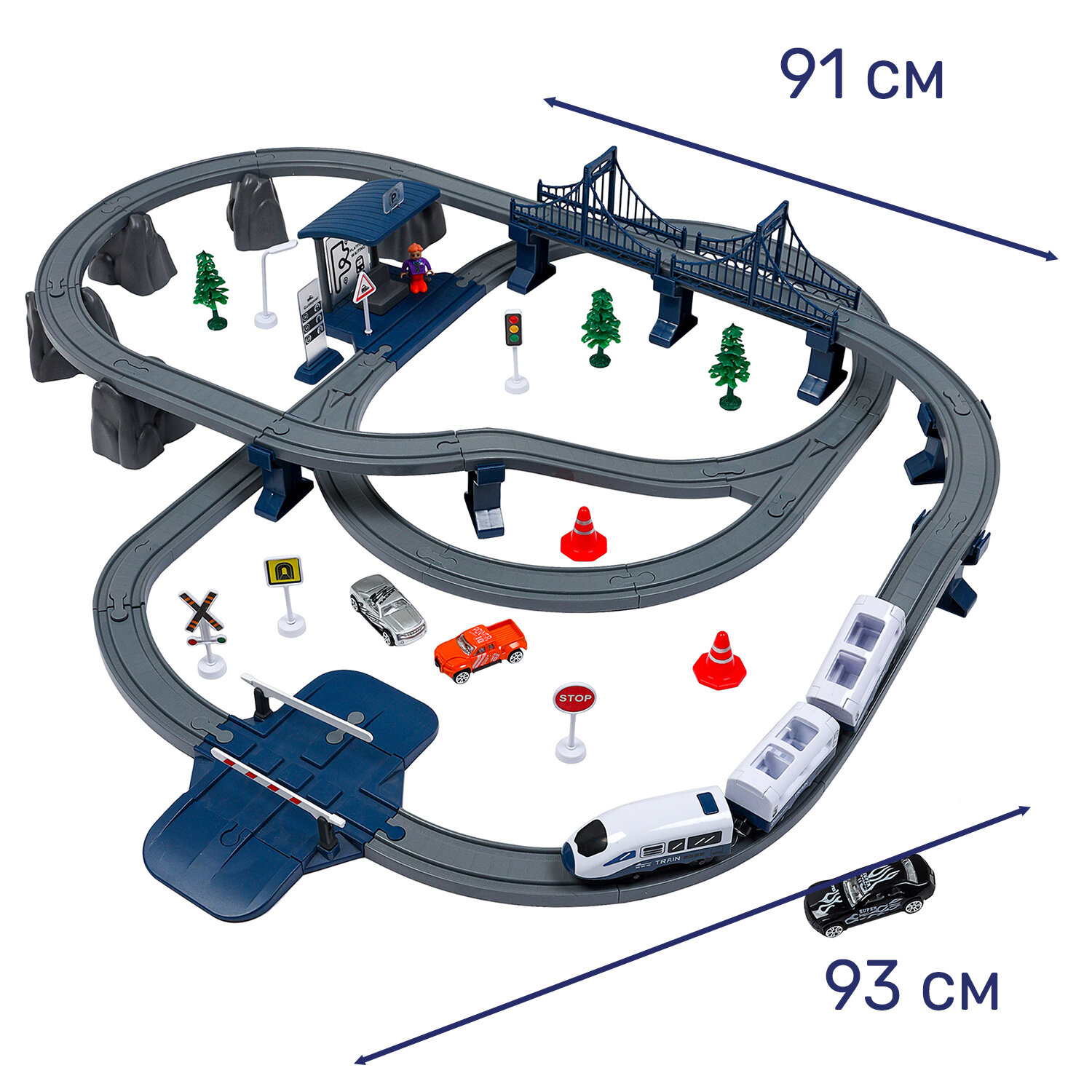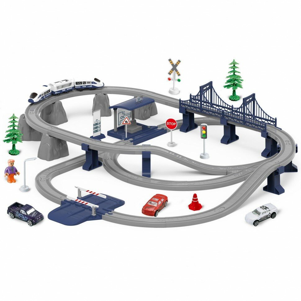 Детская железная дорога "Мой город, 103 предмета", на батарейках со светом и звуком (Синяя)