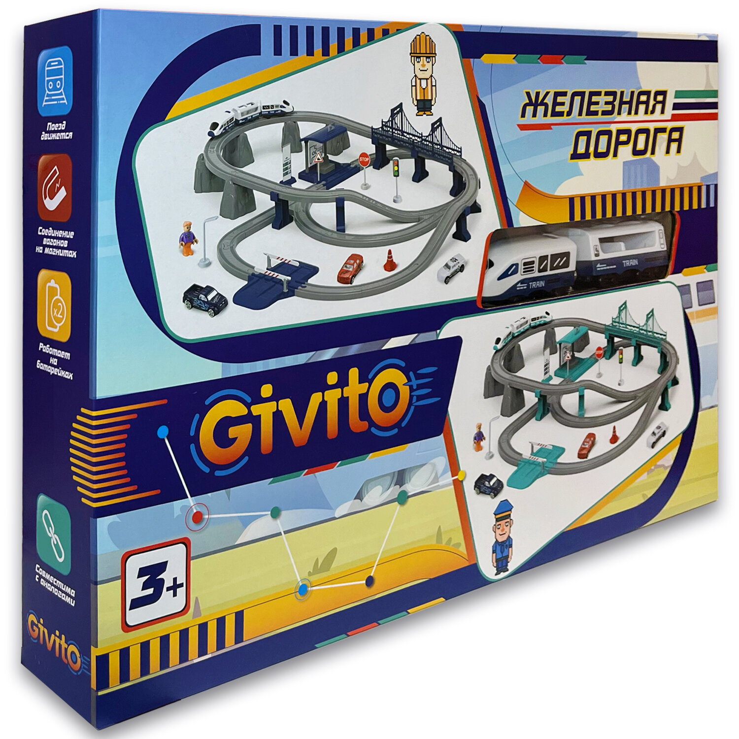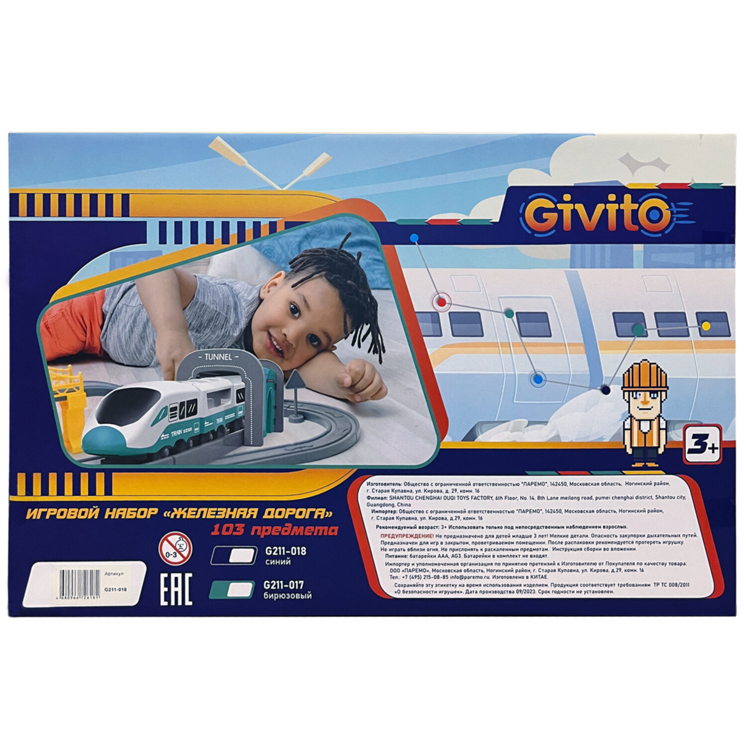 Детская железная дорога Givito Мой город 103 предмета на батарейках со светом и звуком Синяя