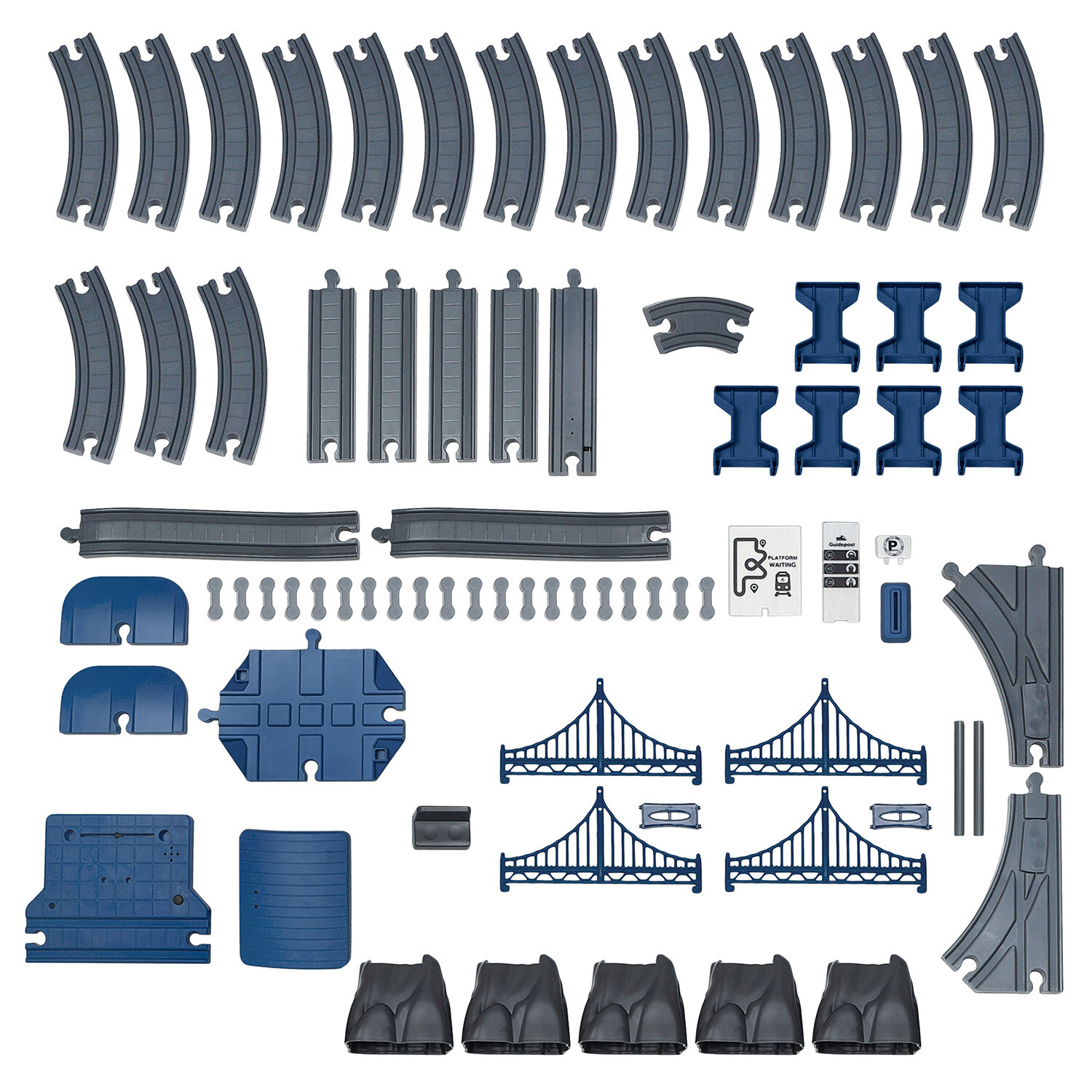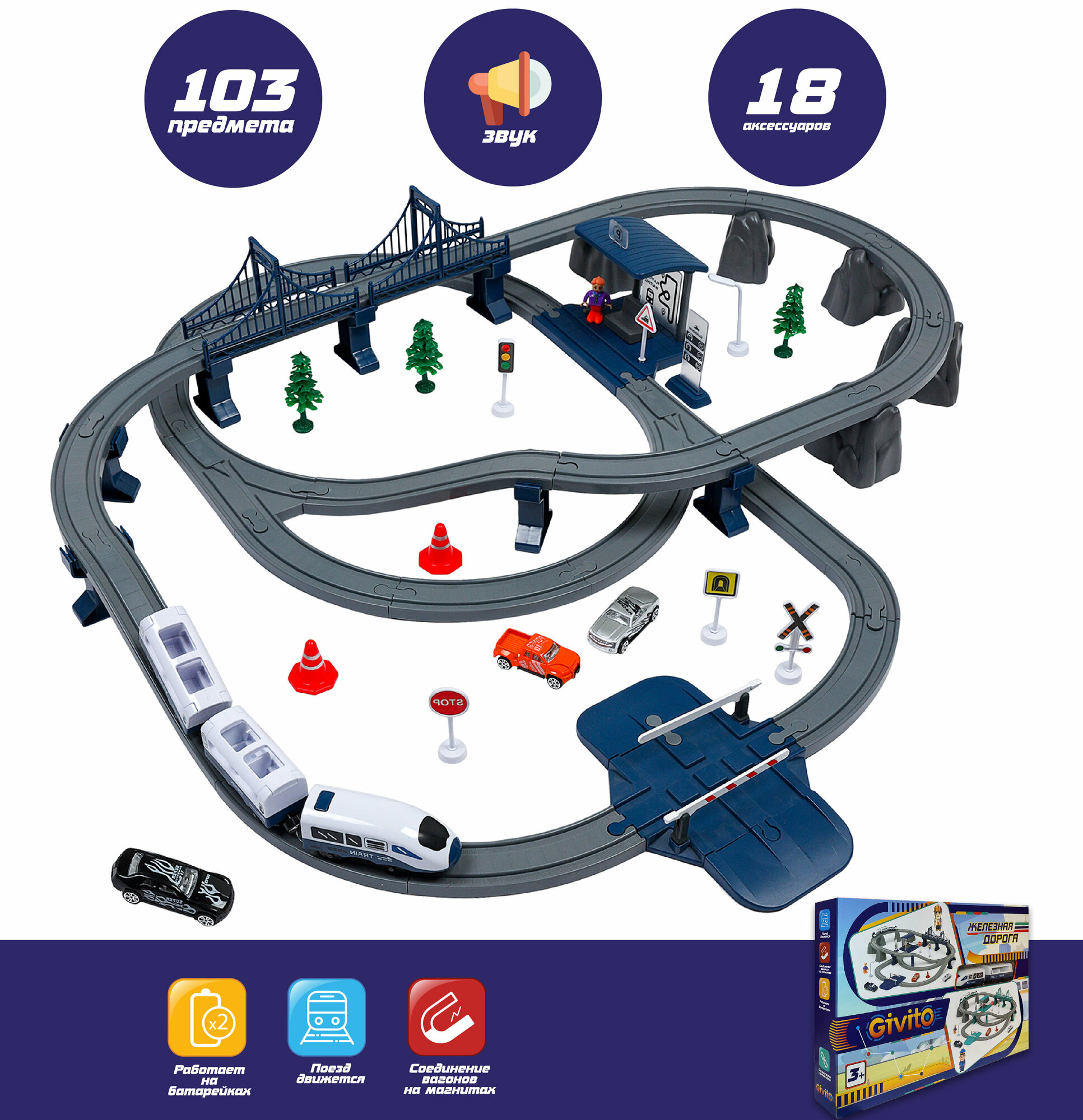 Купить Железная дорога Givito для детей "Мой город" 103 предмета на батарейках со светом и звуком Синяя G211-018