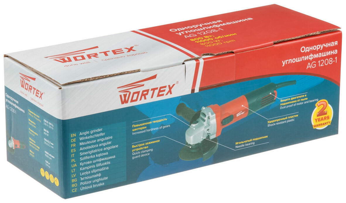 Шлифмашина угловая (болгарка) WORTEX AG 1208-1 (AG1208100019)