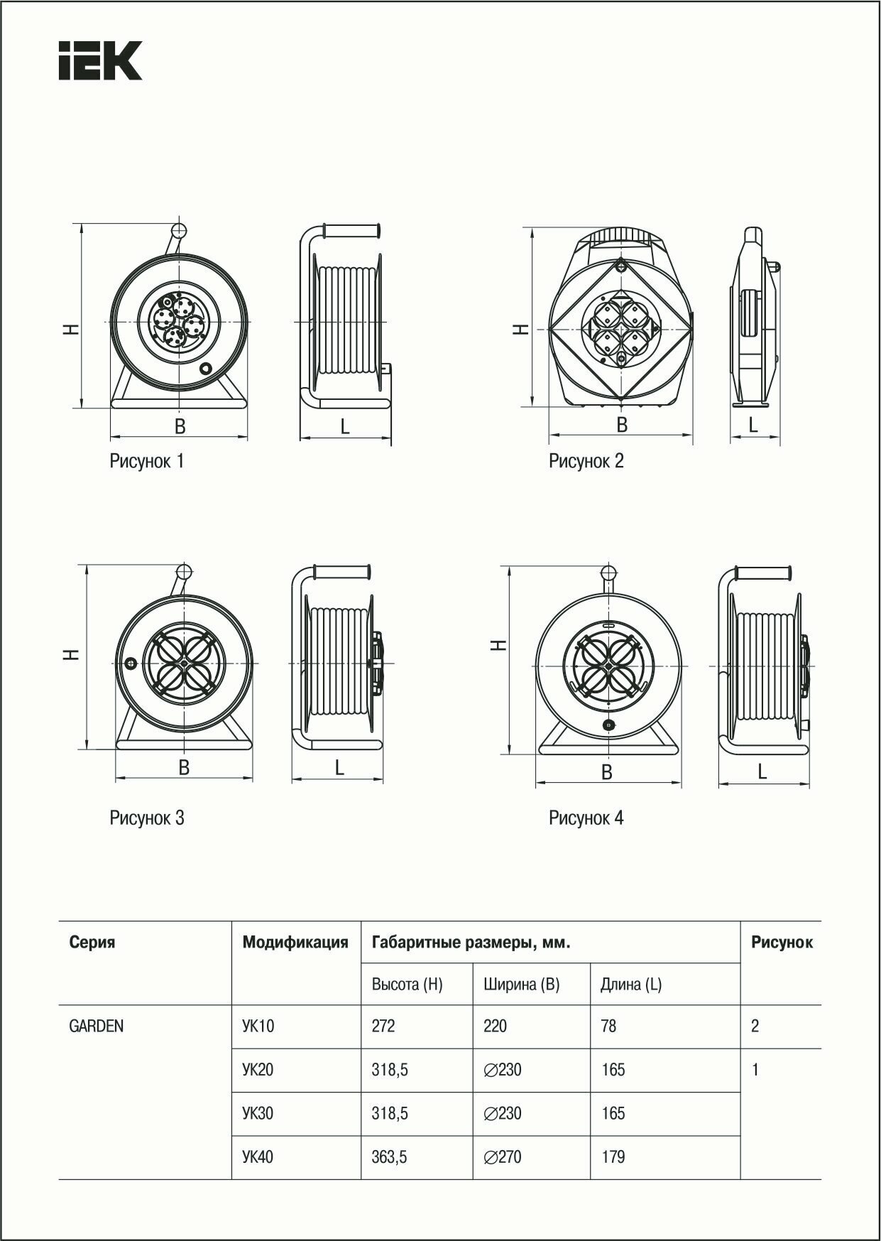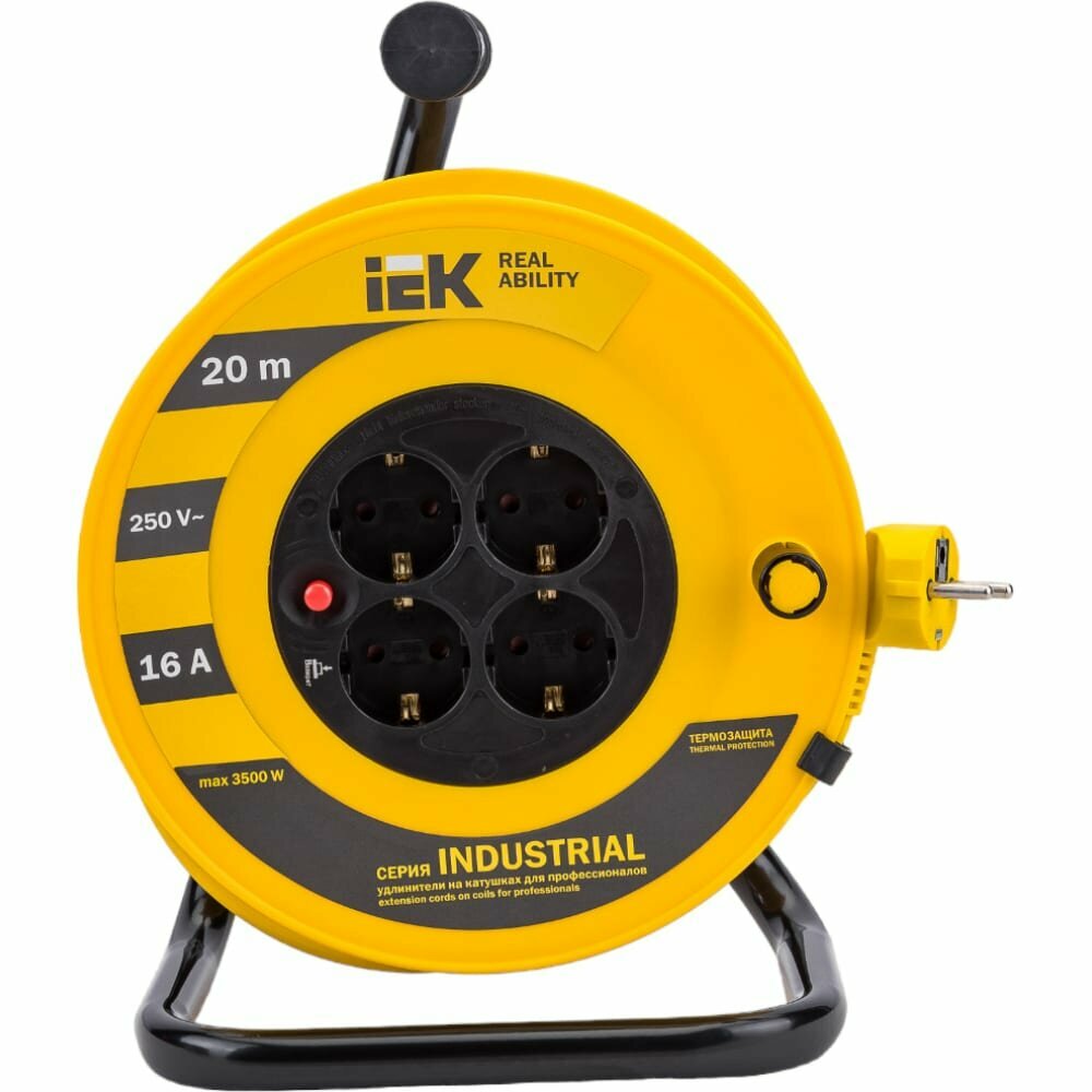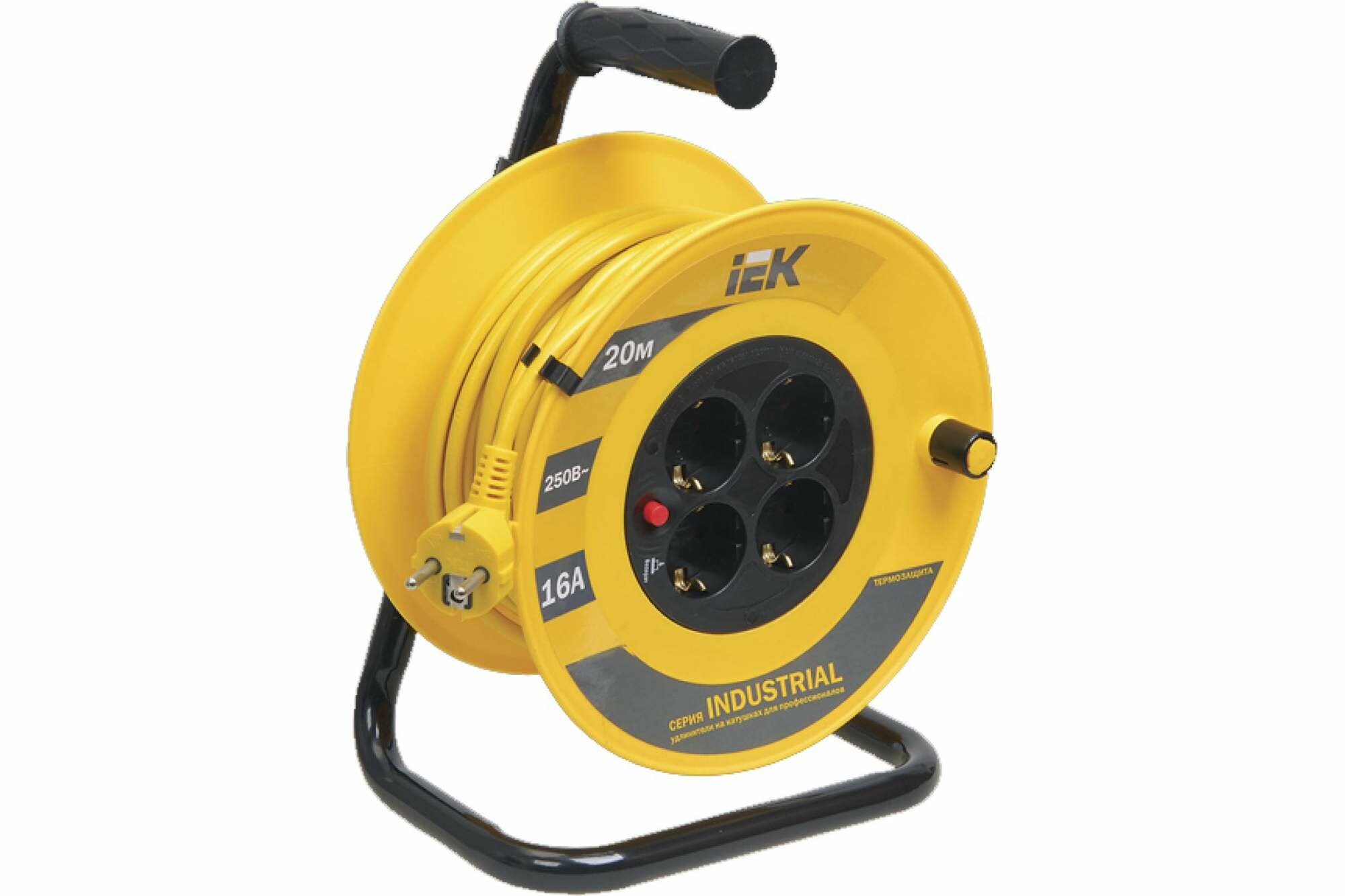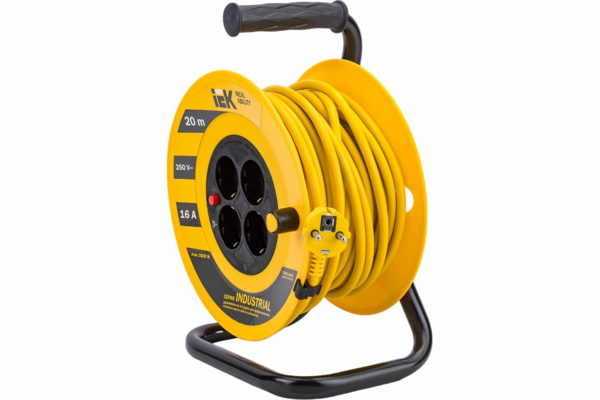 Удлинитель на катушке IEK Industrial УК20, 4 розетки, с т/з, с заземлением, 3 x 1,5 мм², 20 м