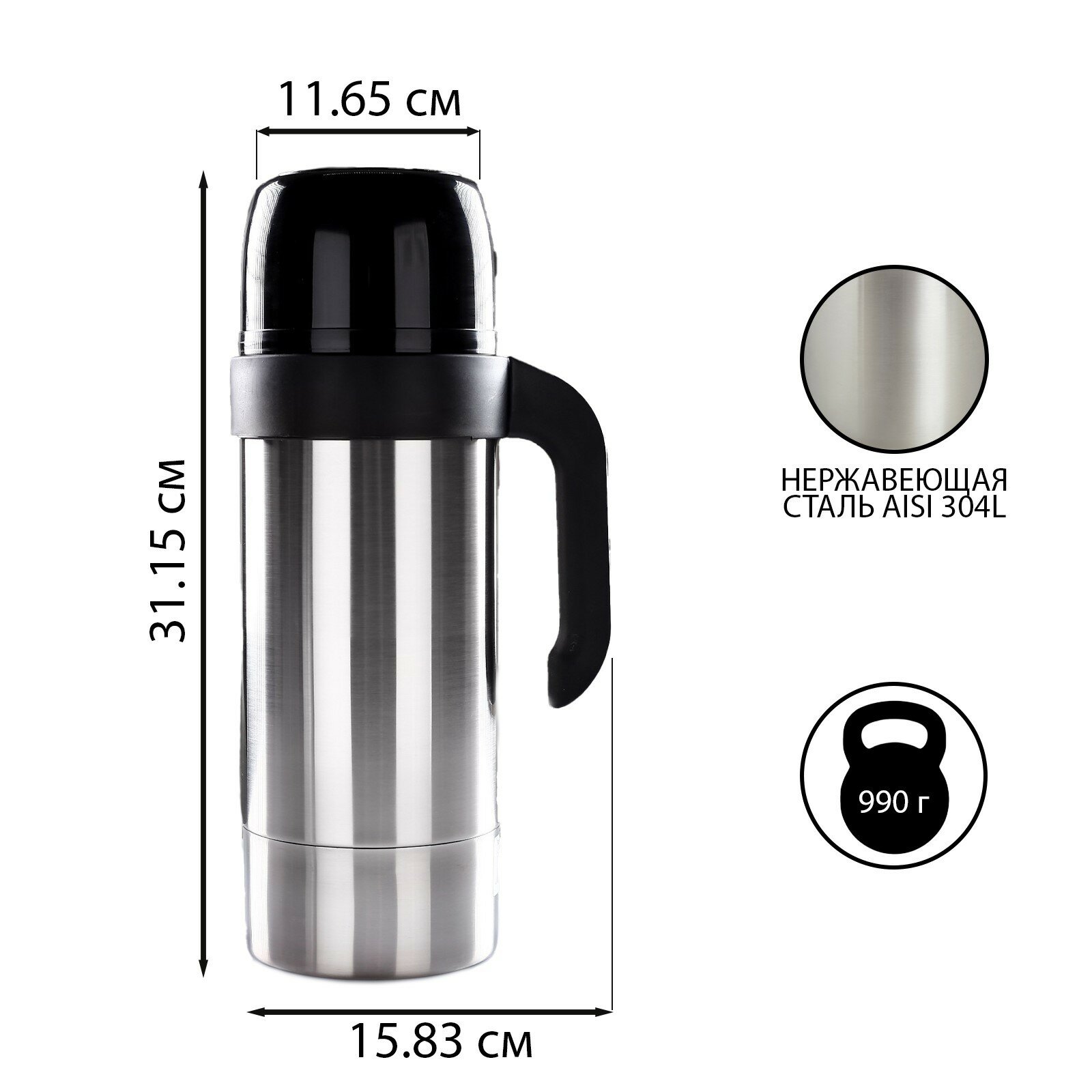 Термос "Амет. Турист-Н" 1с586, с широким горлом, 1.5 л, 33.5 см, 49 °С, 24 ч интересное: