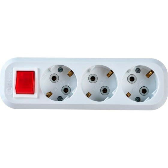 Штепсельная электрическая колодка для удлинителя с заземлением и выключателем MAKEL MGP211 на 3 гнезда 2,2 кВт 10А белая