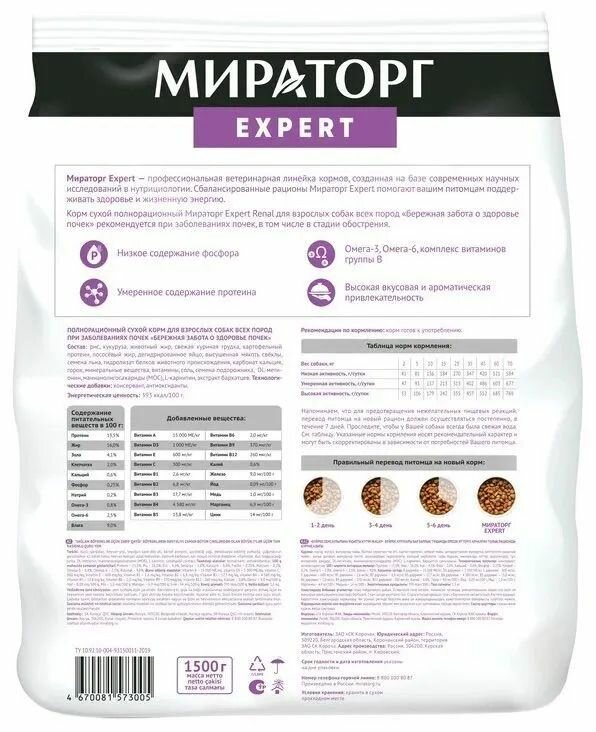 Ниже Вы можете прочитать отзывы на Мираторг вет. полнорационный сухой корм для взрослых собак всех пород при заболеваниях почек «Бережная забота о здоровье почек», ознакомится с подробными характеристиками, посмотреть интересные обзоры и фотографии на Мираторг вет. полнорационный сухой корм для взрослых собак всех пород при заболеваниях почек «Бережная забота о здоровье почек».