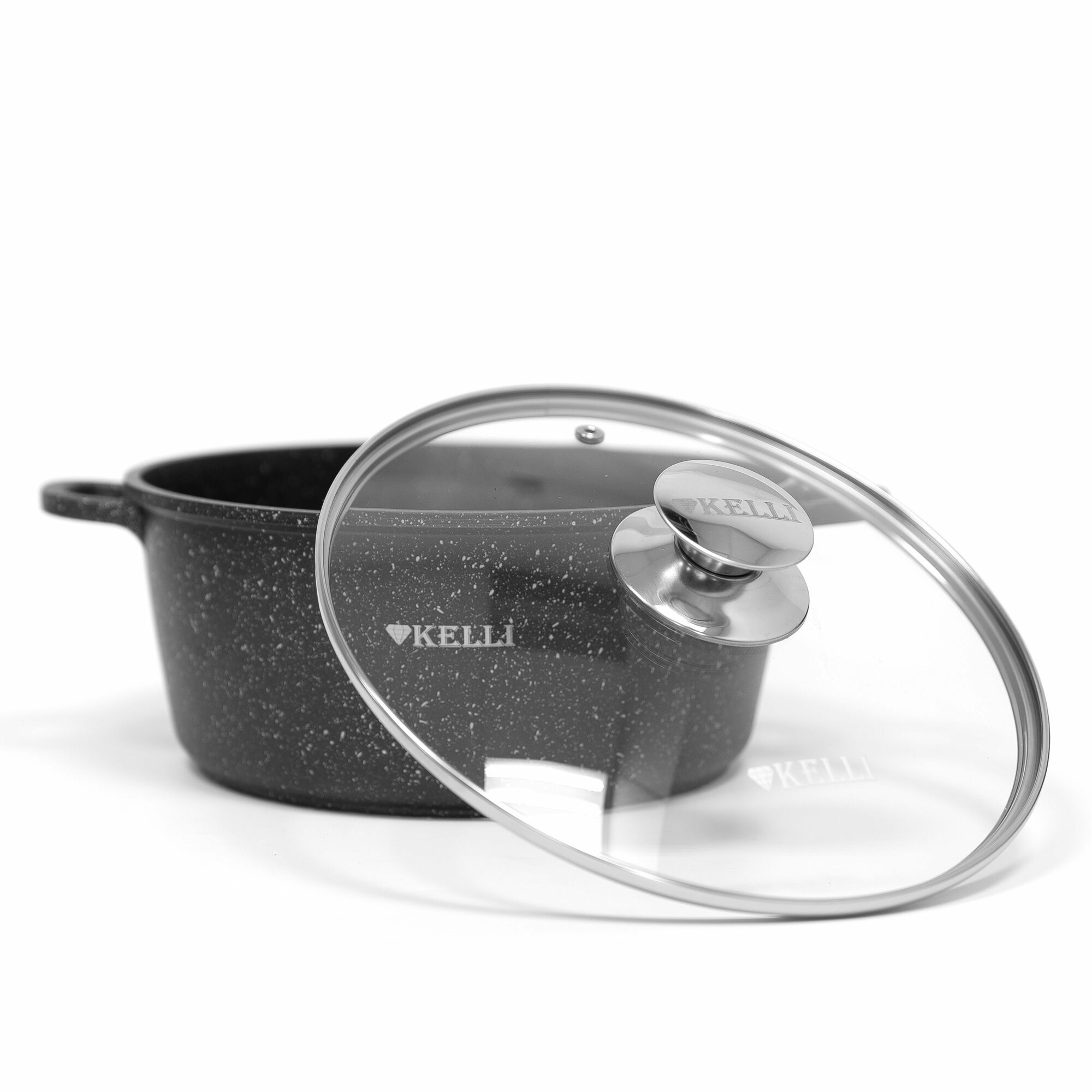 Кастрюля с крышкой KELLI KL-4022-24 с мраморным покрытием 5,5л