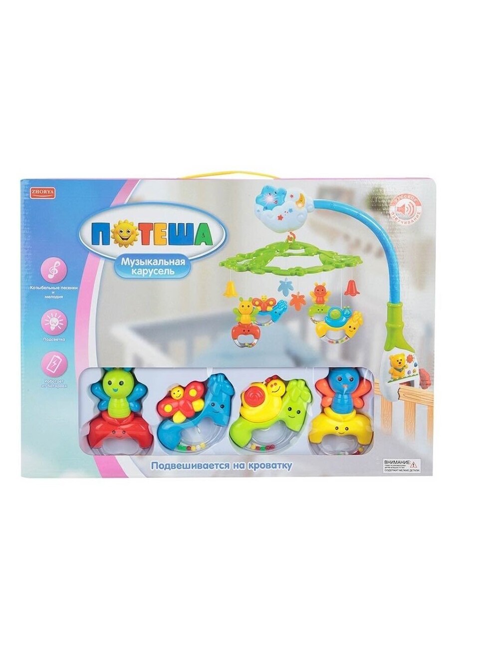 Музыкальная карусель Потеша Насекомые на кроватку/коляску (свет, звук) Zhorya ZYA-A2124-3