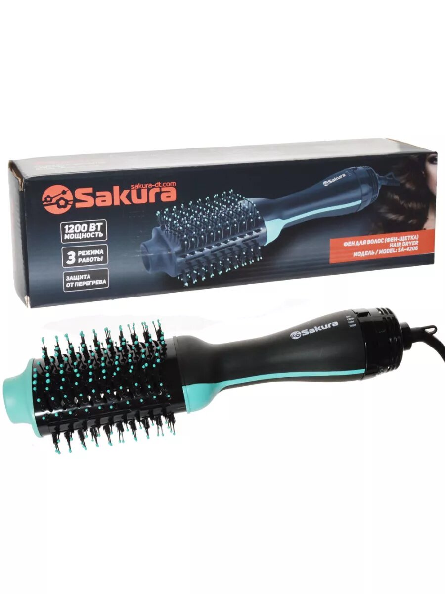 Купить Фен-щётка SAKURA SA-4206BL 1200 Вт, черный/бирюзовый