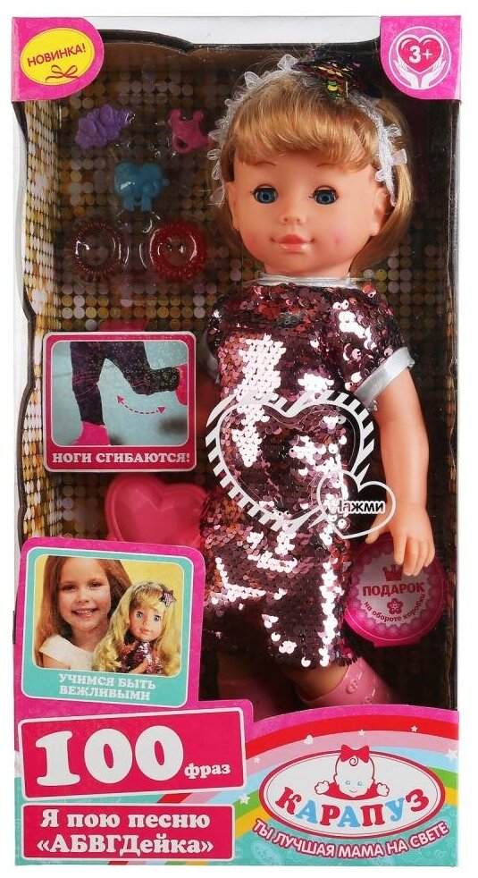 Кукла озвученная Карапуз Алиса 40см, 100 фраз, гнутся ноги, с аксесс., в ассорт. в кор.