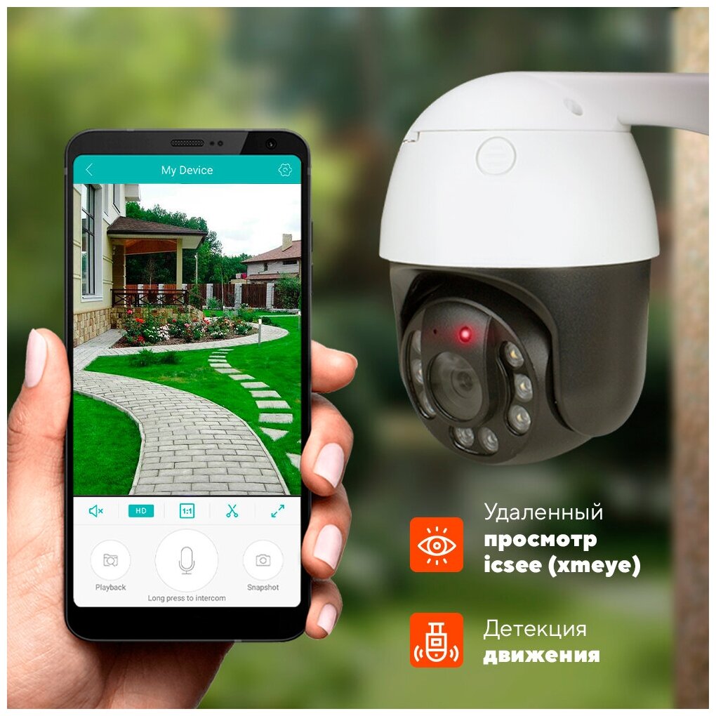 | Дополнительная информация | Программная детекция движения. При движении перед объективом камеры включится запись на карту памяти, а в приложение на смартфон придет оповещение. PUSH Оповещения. При детекции движения придет оповещение на смартфон, чтобы владелец мог оперативно на него отреагировать. Функцию можно отключить. Запись видео со звуком. Наличие встроенного микрофона позволяет получить наиболее полную картину происходящего и разрешить конфликтные ситуации Встроенный динамик. Обеспечивает полноценную двухстороннюю аудиосвязь для разговора с людьми, находящимся рядом с камерой. Многопользовательский режим. Основной пользователь камеры может предоставить доступ к просмотру другим аккаунтам облака iCsee. Совместимость с Xmeye! Разъем RJ-45 Для эксплуатации камеры через проводное соединение с роутером. Применяется при большом удалении от роутера или слабом сигнале WiFi сети Протокол ONVIF Для совместимости с различными видеорегистраторами. Камера передает поток в таком случае на регистратор для записи на жесткий диск |