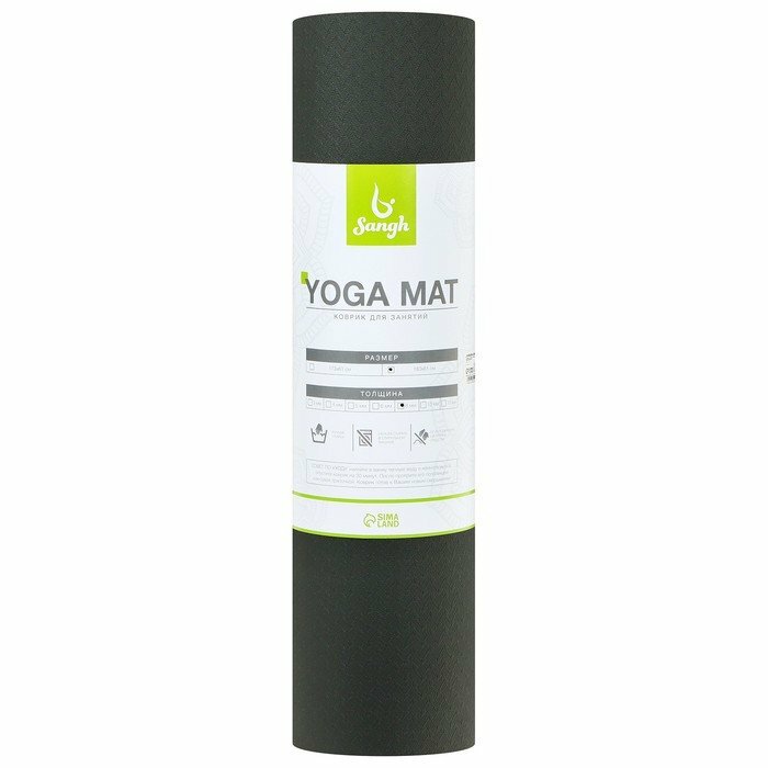 Коврик для йоги Sangh, 183×61×0,8 см, цвет тёмно-зелёный