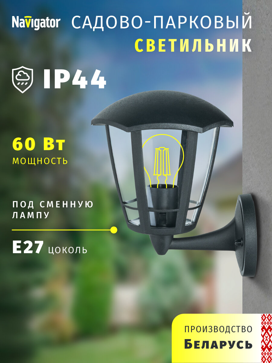 СохранитьСветильник садовый Navigator 61 614, 6 граней, черный, IP44, цоколь E27 интересное: