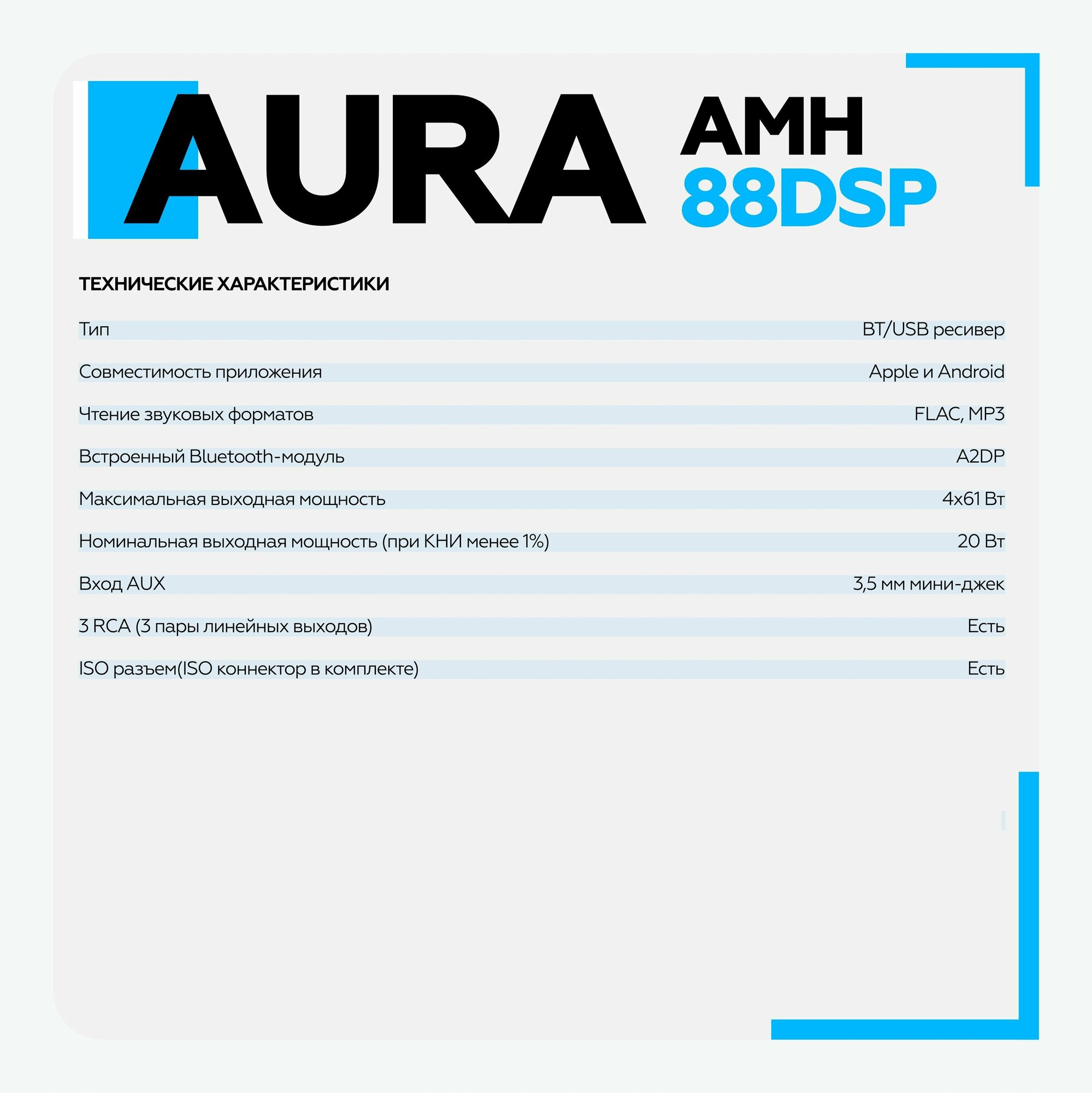 Процессорная Автомагнитола Aura AMH-88DSP / DSP-процессор / 4х61Вт / Bluetooth / FLAC, MP3, WAV, APE, AAC / RGB