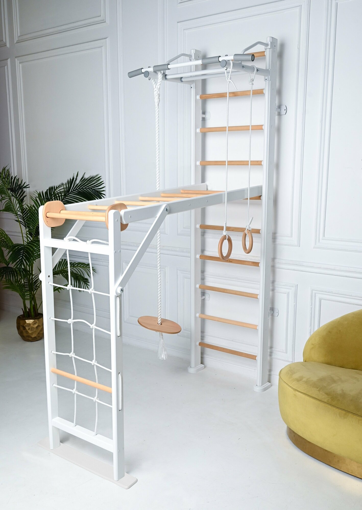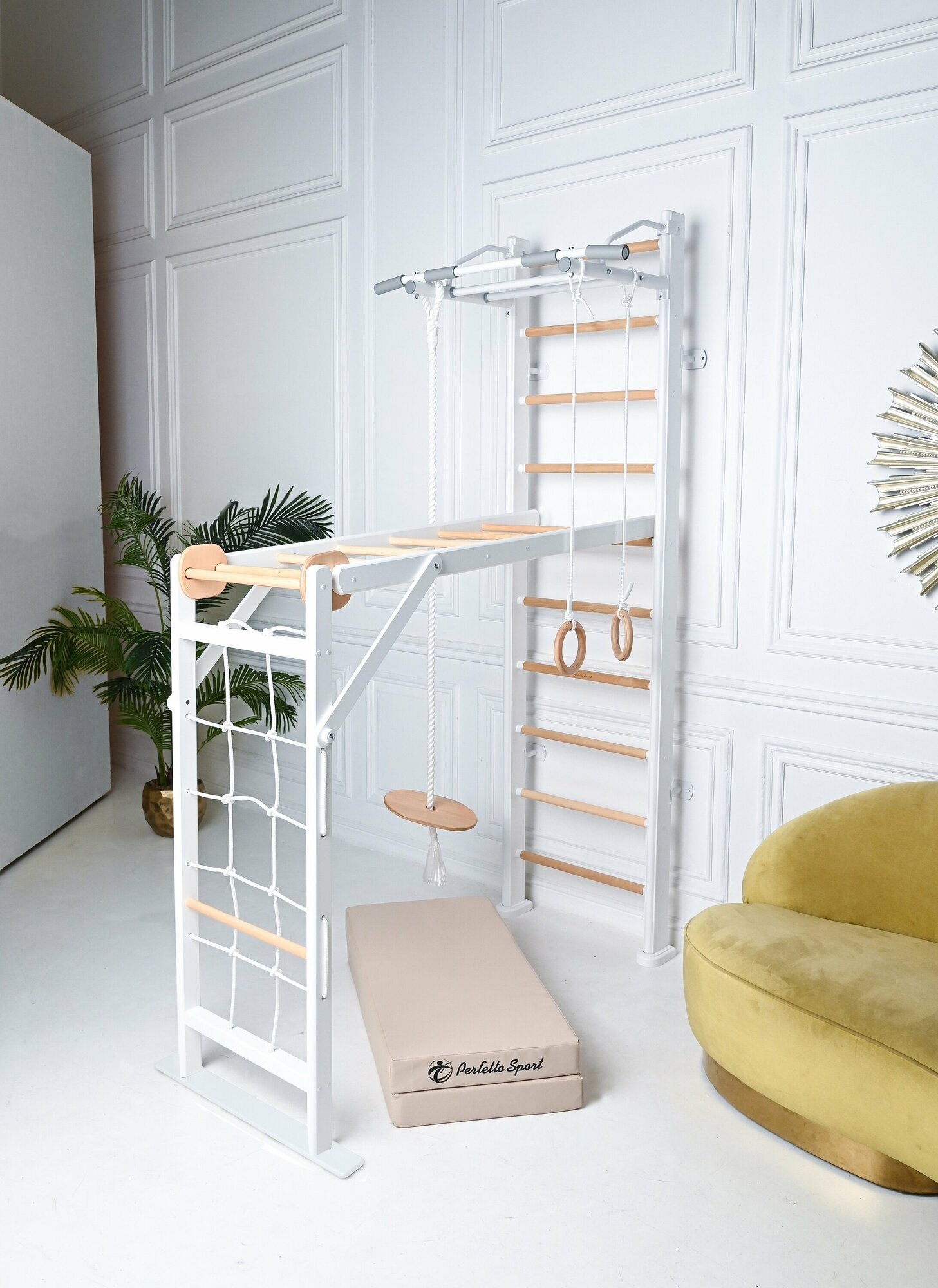 Купить Детский спортивный комплекс для дома, игровой PERFETTO SPORT "Scala in legno 2" bianco-naturale PS-118
