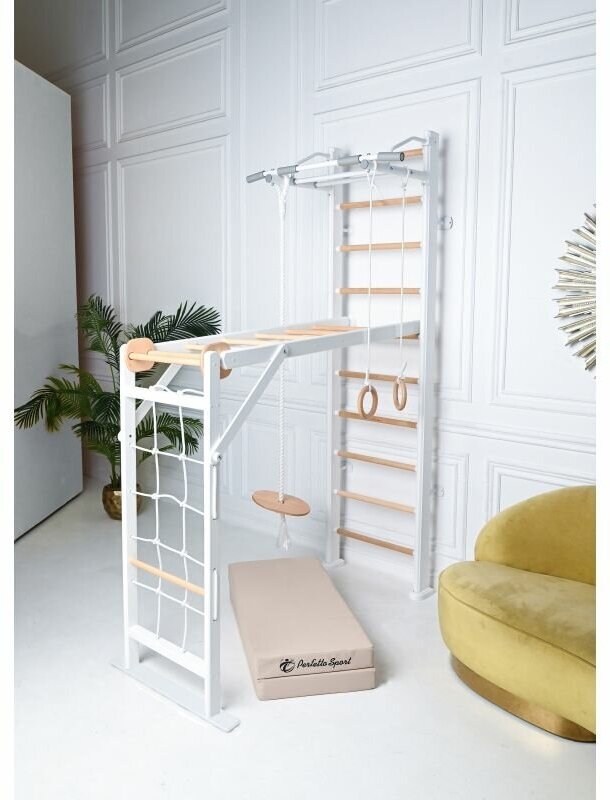 Детский спортивный комплекс для дома, игровой PERFETTO SPORT "Scala in legno 2" bianco-naturale PS-118 интересное: