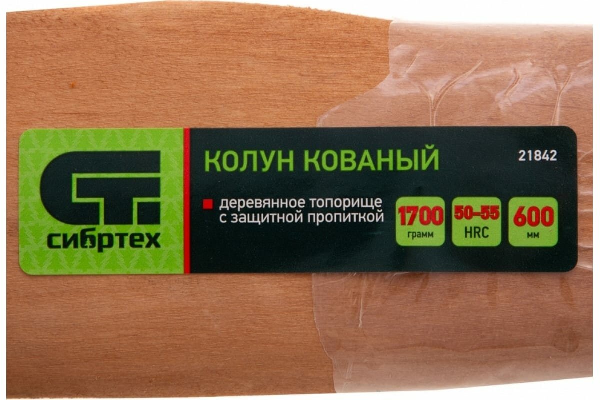 Кованый колун СИБРТЕХ 1700/2050 г, деревянное топорище, 600 мм 21842