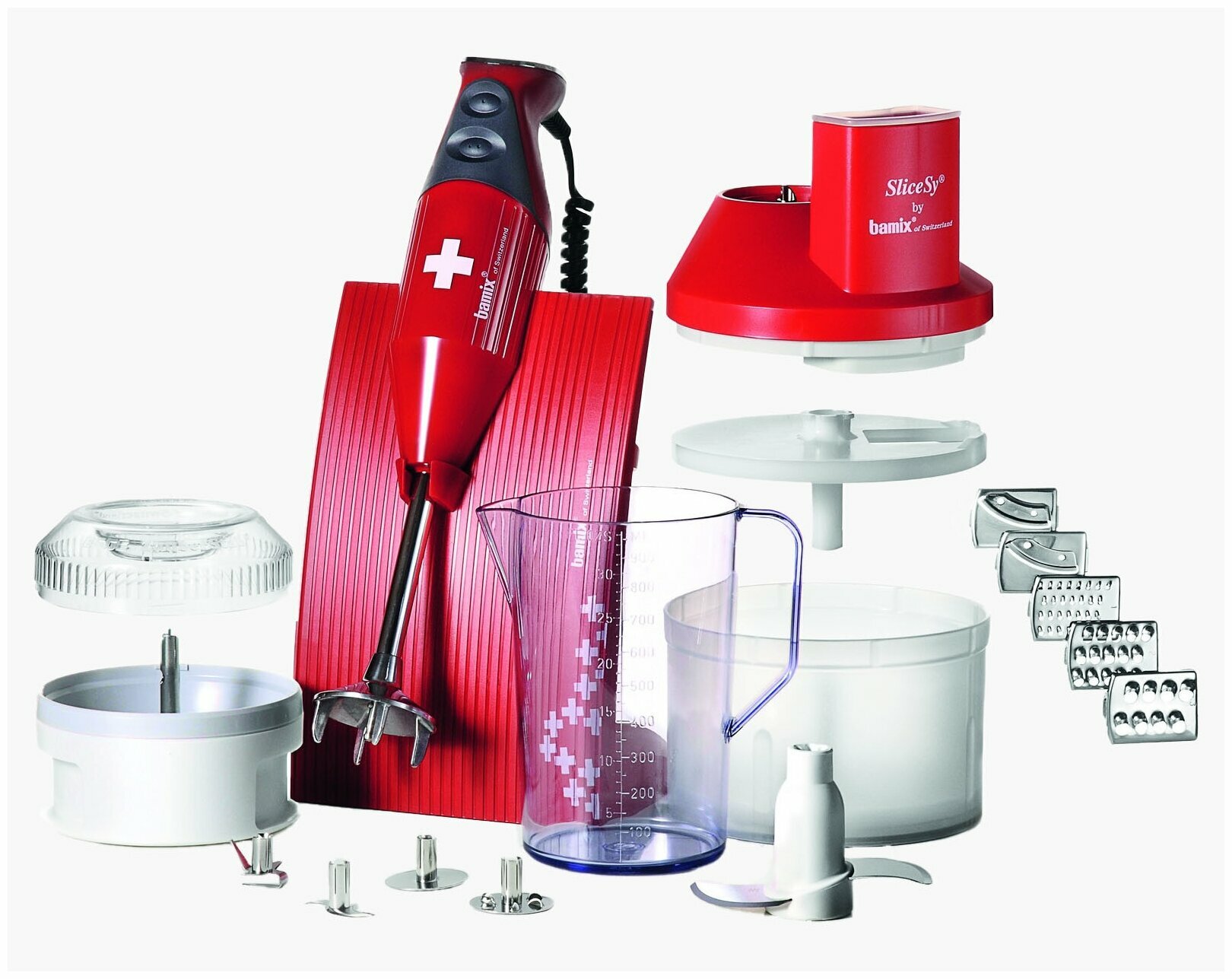 | Дополнительная информация | многофункциональная насадка; насадка для взбивания: для соусов и шейков; насадка для перемешивания: для майонеза, пудингов и кондитерских изделий; насадка диск; измельчитель: для свежей зелени, орехов, шоколада и твердых сортов сыра; нож для рубки мяса и овощей: идеально подходит для резки мяса, рыбы и длинноволокнистых овощей, например сельдерея, спаржи и фенхеля; процессор; прибор SliceSy с 6 ножами; подставка настольная |