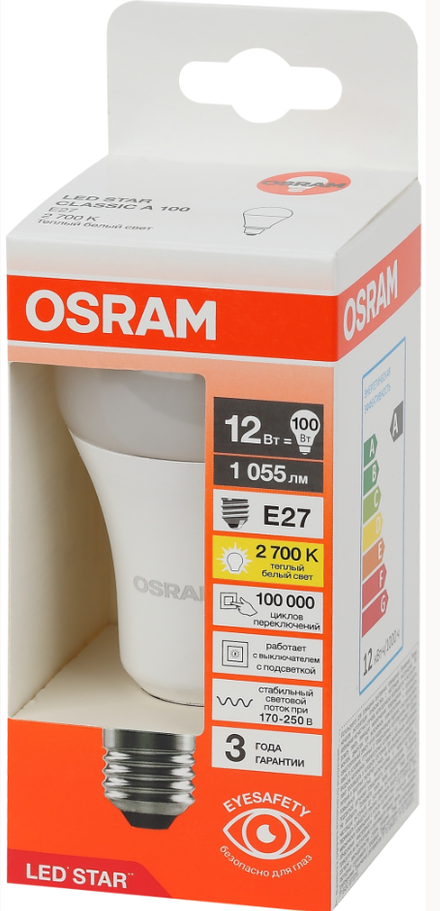 Лампа светодиодная Osram LS CLA100 груша 12 Вт E27 2700K 1055Лм 170-250 В интересное: