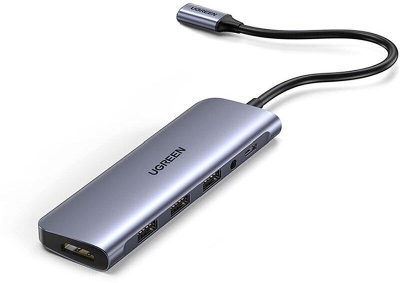Мульти Хаб Ugreen CM136 USB-C to 3 x USB 3.0 / HDMI / mini jack 3.5 mm / USB-C (PD) серый (80132)