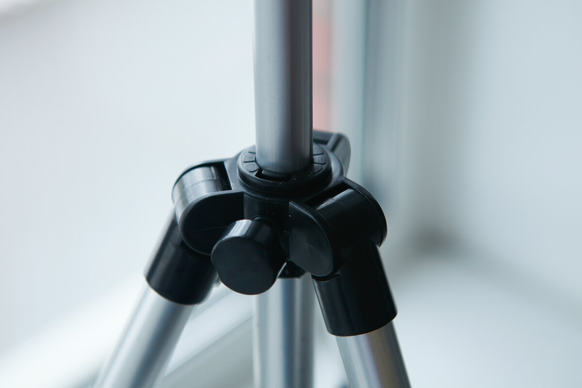 - затягиваешь винты до конца, а все-равно каждое соединение глипкое - нет вертушка для плавного подъема по высоте, приходится остаблять винт, руками поднимать штатив и затягивать винт |