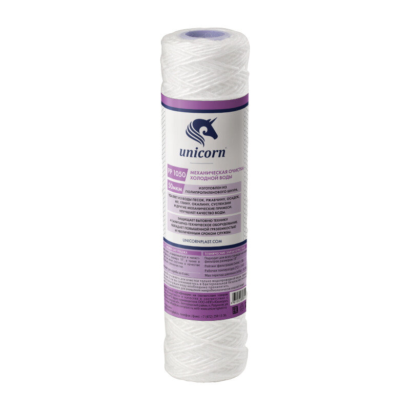 Сменный картридж Unicorn РР 1050 механический из полипропиленового шнура 10" 50 микрон
