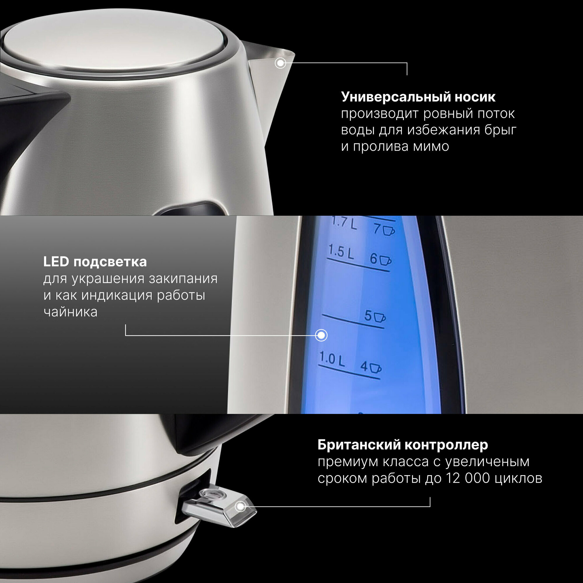 | Минусы: | Работает шумно, когда кипит |