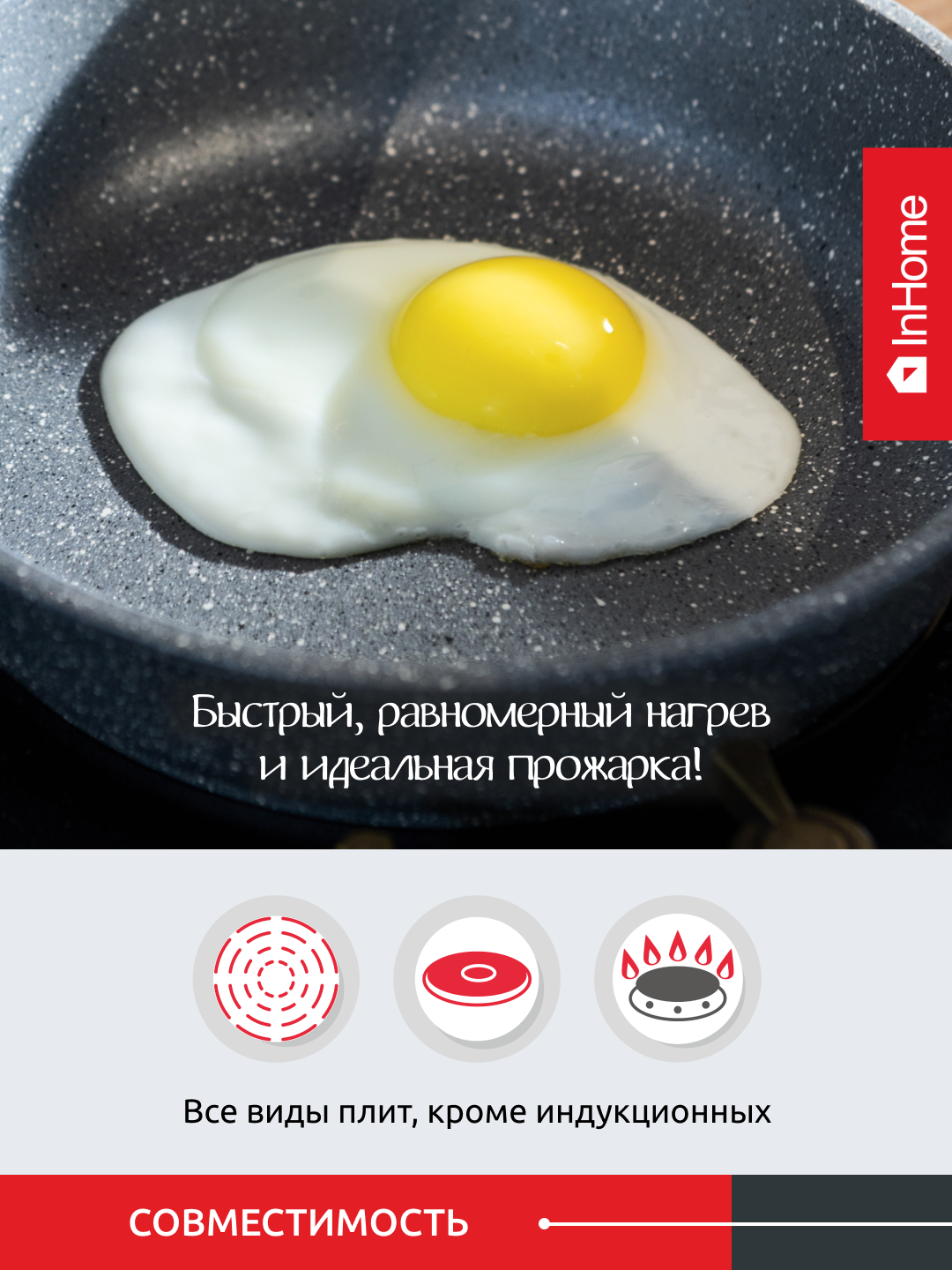 Литая сковорода с антипригарным покрытием, InHome IN26/M0