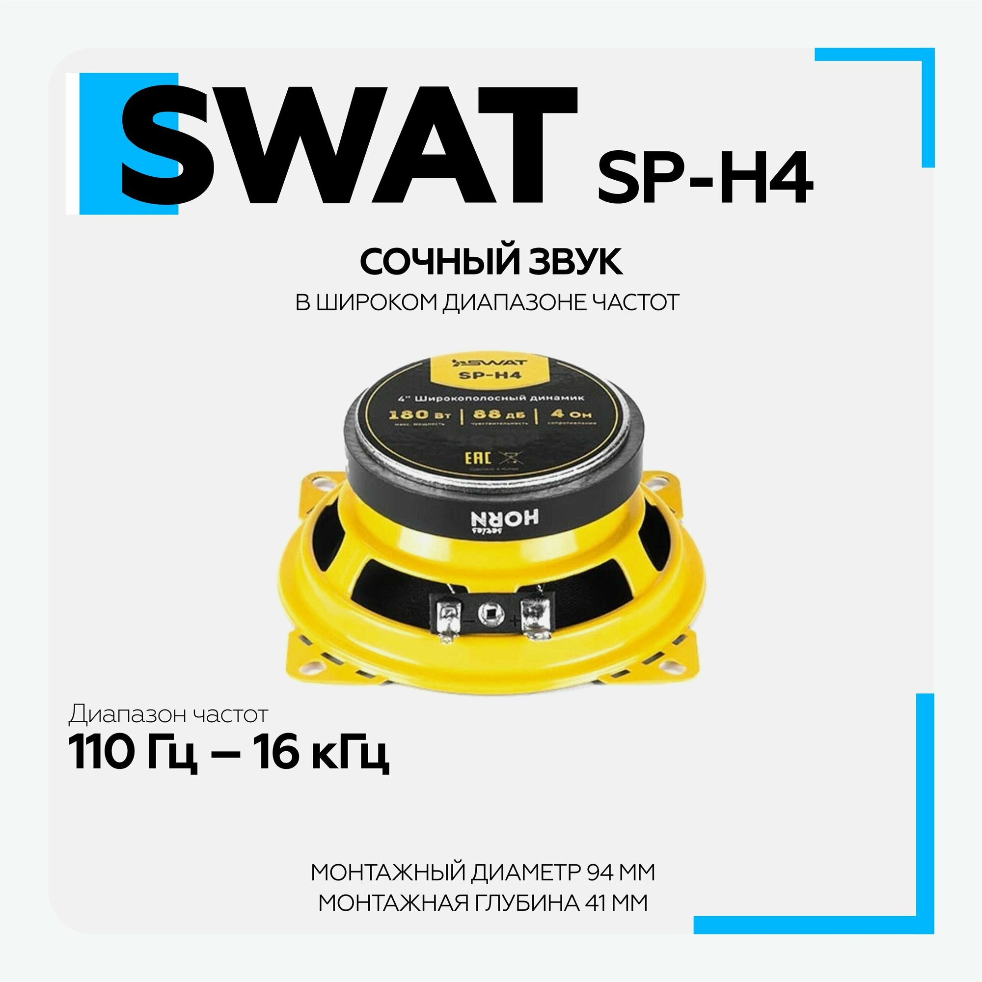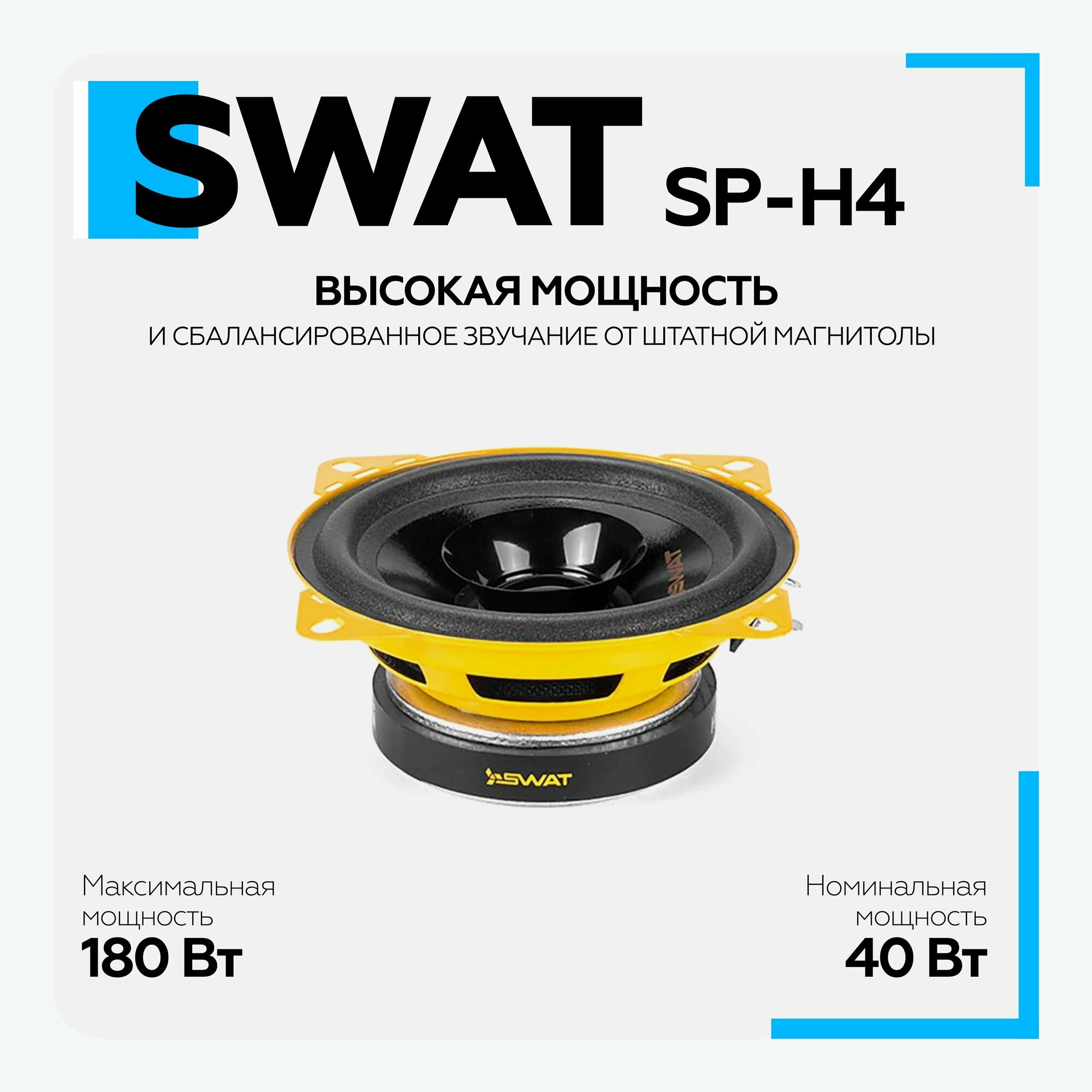 Колонки автомобильные Swat SP-H4 180Вт 88дБ 4Ом 10см (4дюйм) (ком.:2кол.) широкополосные однополосные