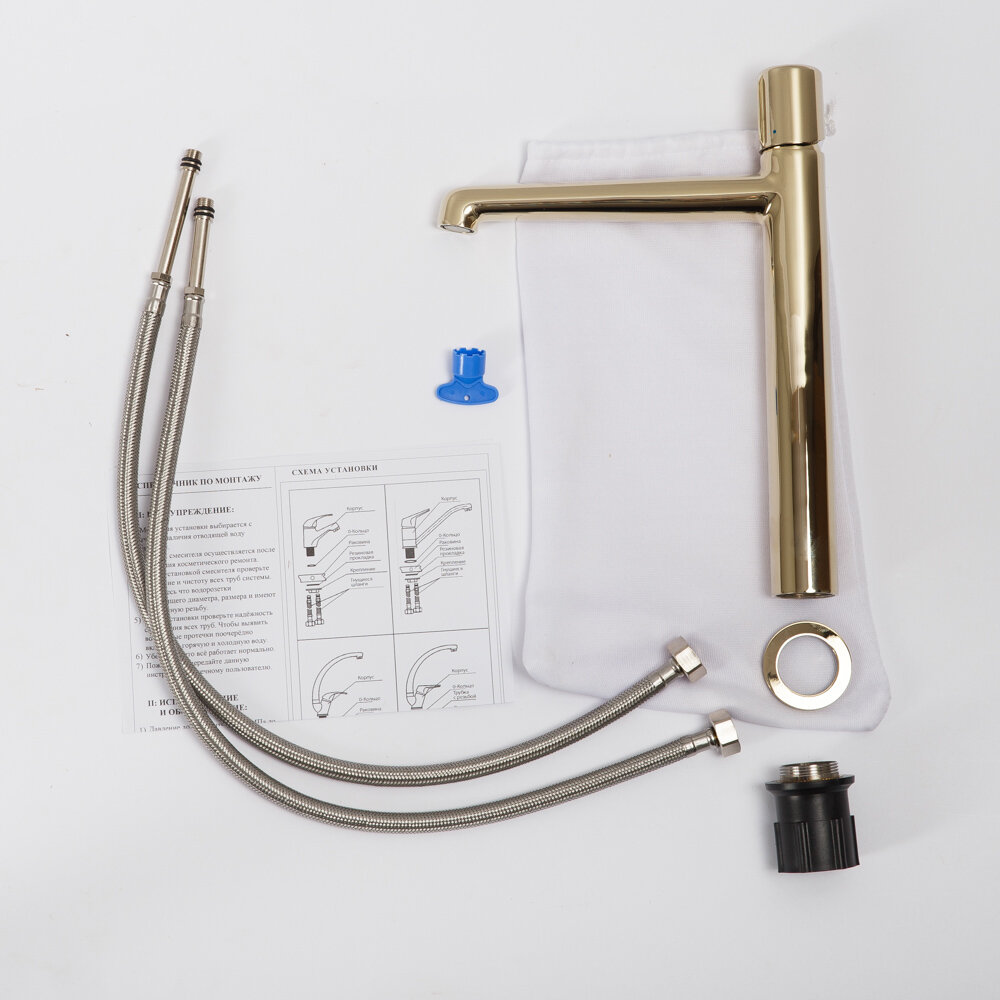 Смеситель для раковины BelBagno Uno высокий, золото (UNO-LMC-ORO-W0)