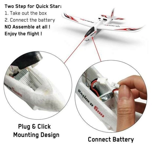 Радиоуправляемый планер Volantex RC Ranger 600мм 2.4G 4ch LiPo RTF with Gyro, EXA76102R интересное:
