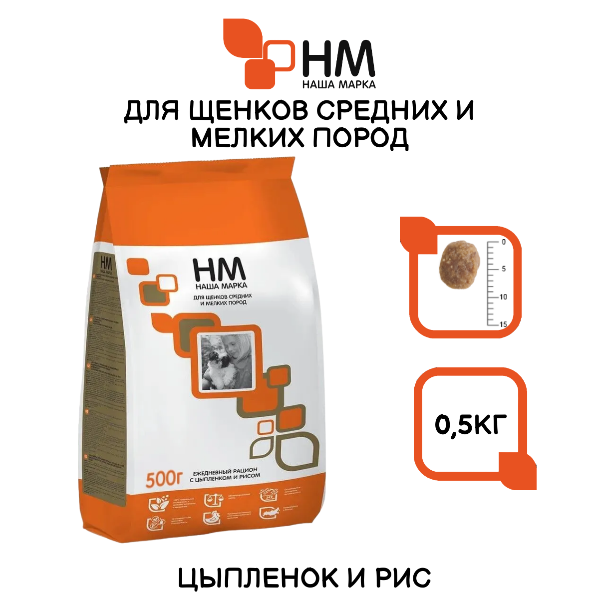 Наша Марка Корм для Щенков Мелких и Средних Пород с Мясом Цыпленка и Рисом 500г