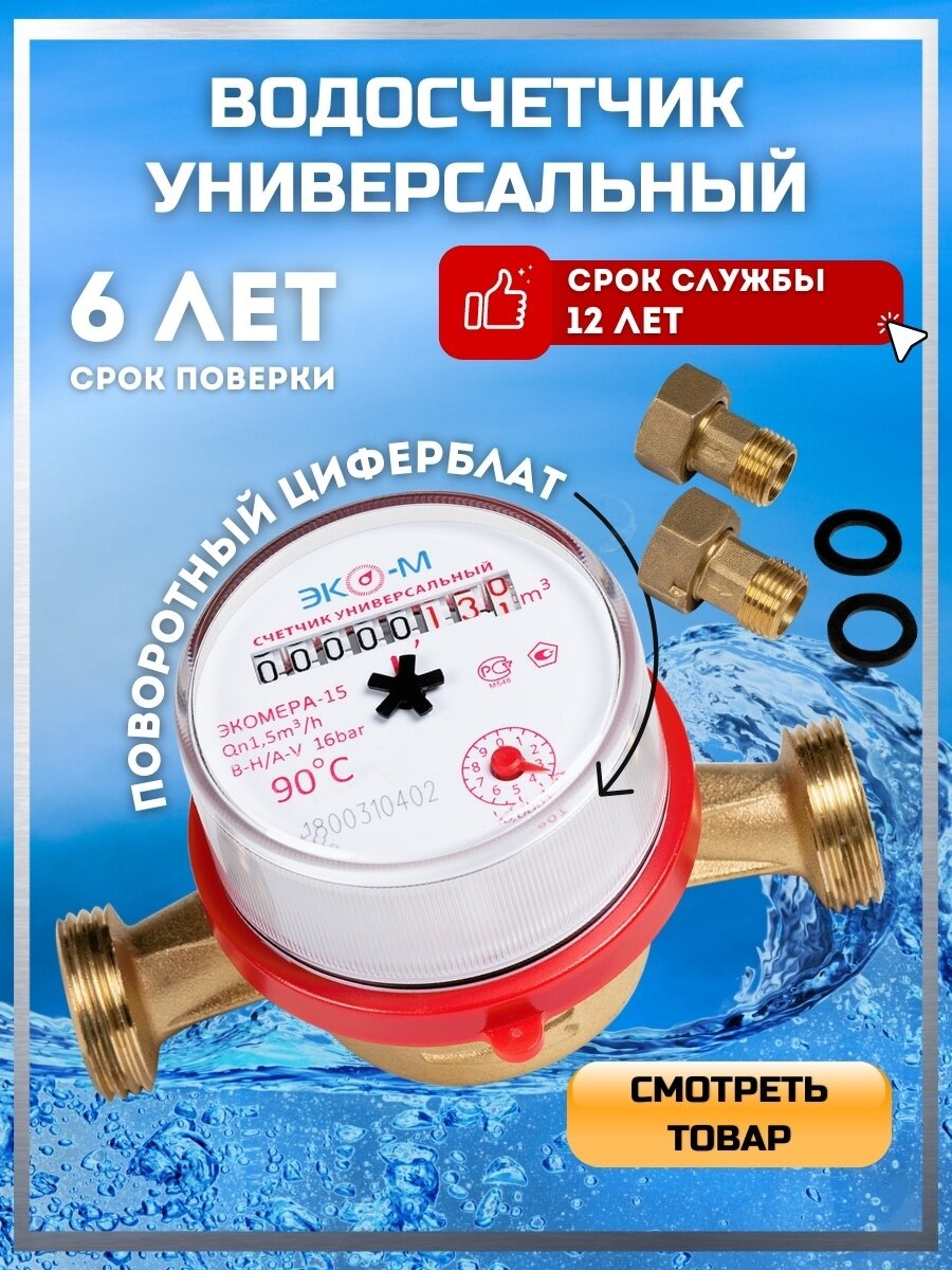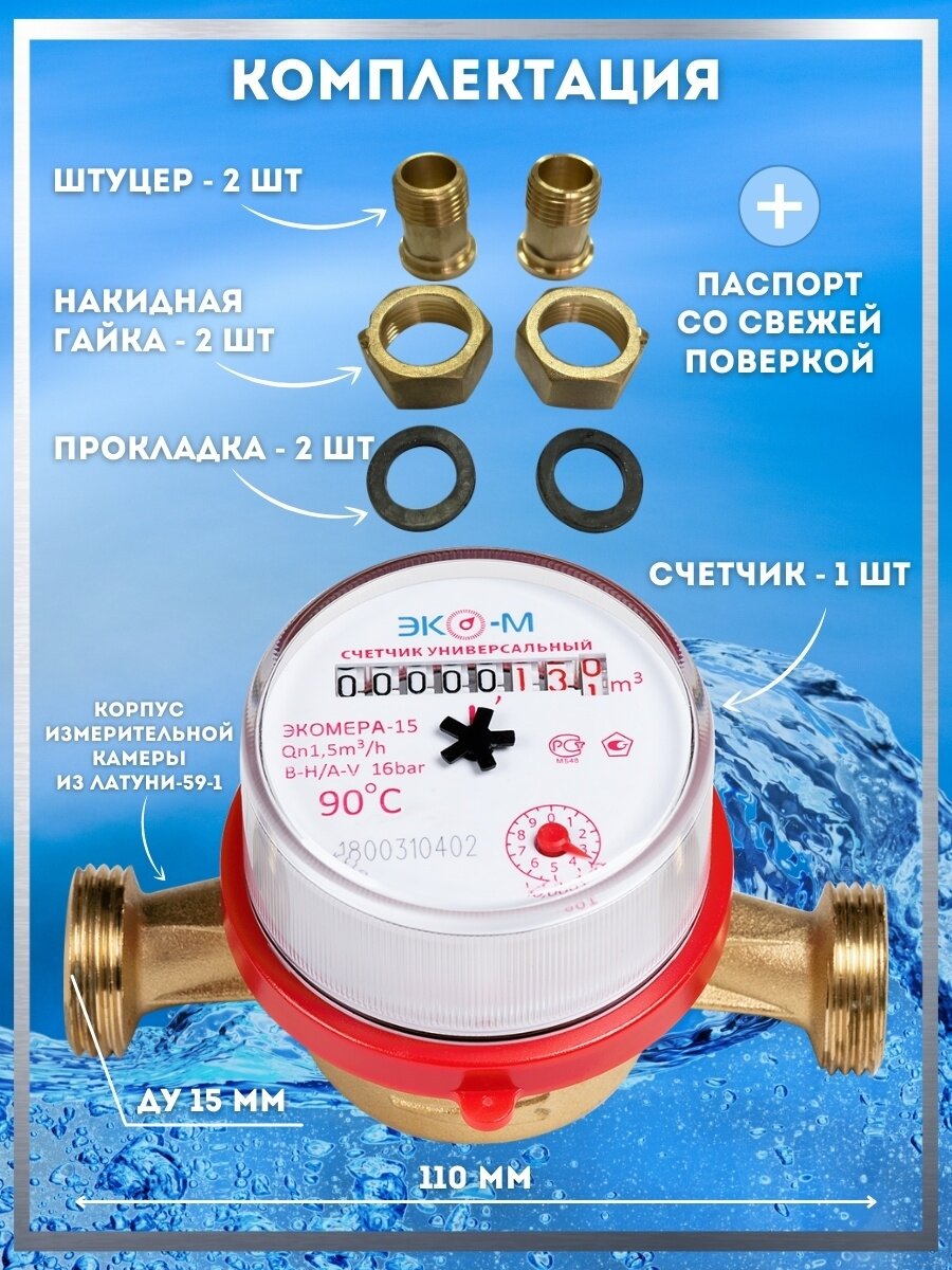 Счетчик Учёта Воды без Комплекта Присоедин Универ L-110 Экомера ЭКОМЕРА-15 Б/К . интересное: