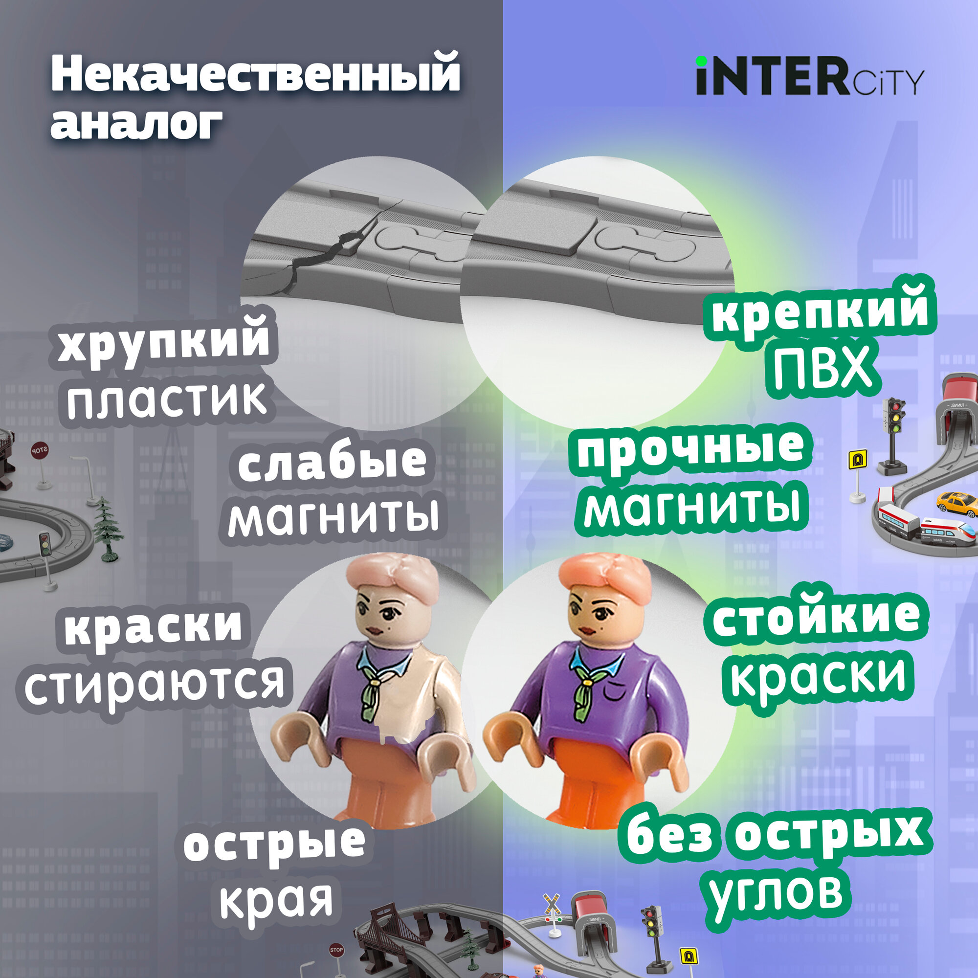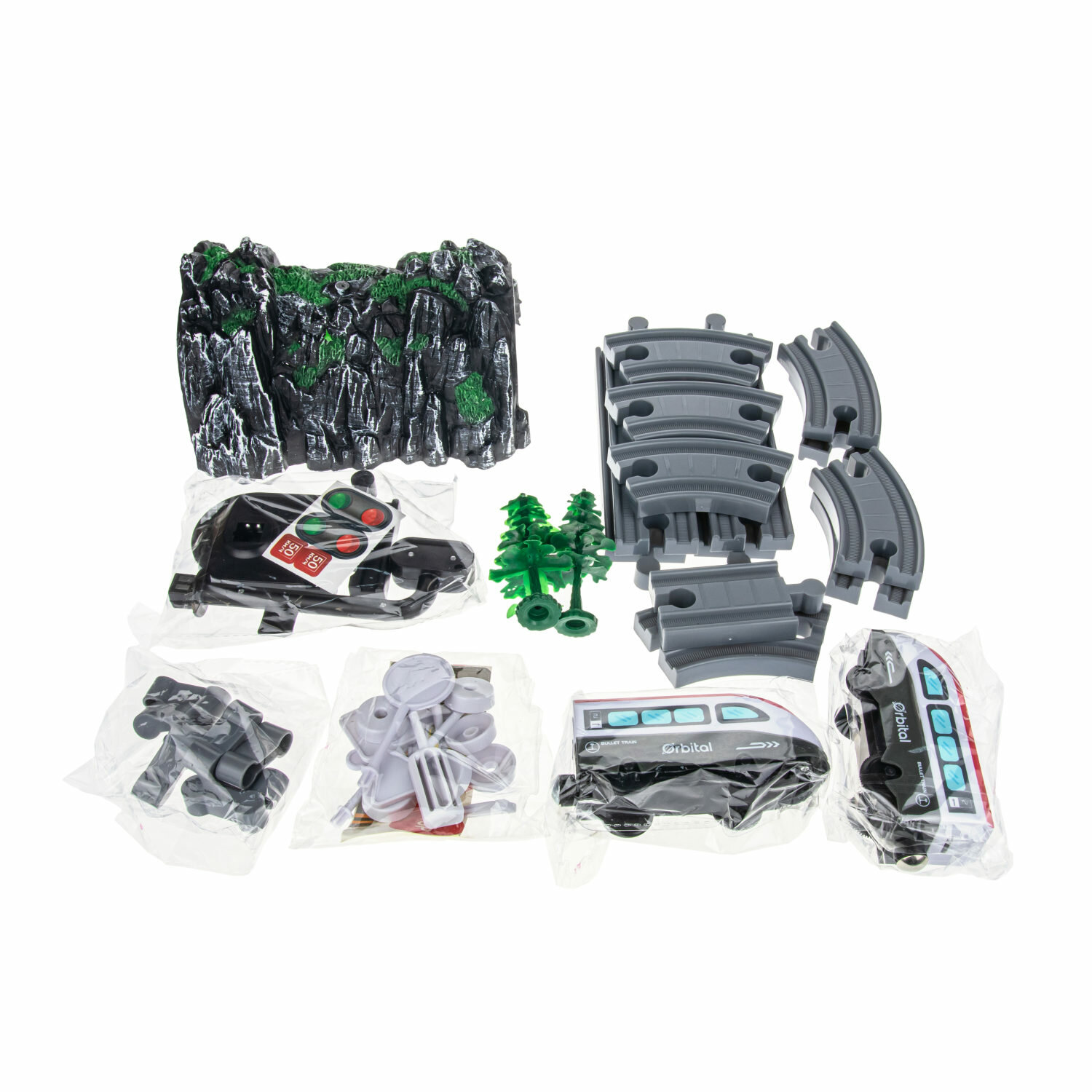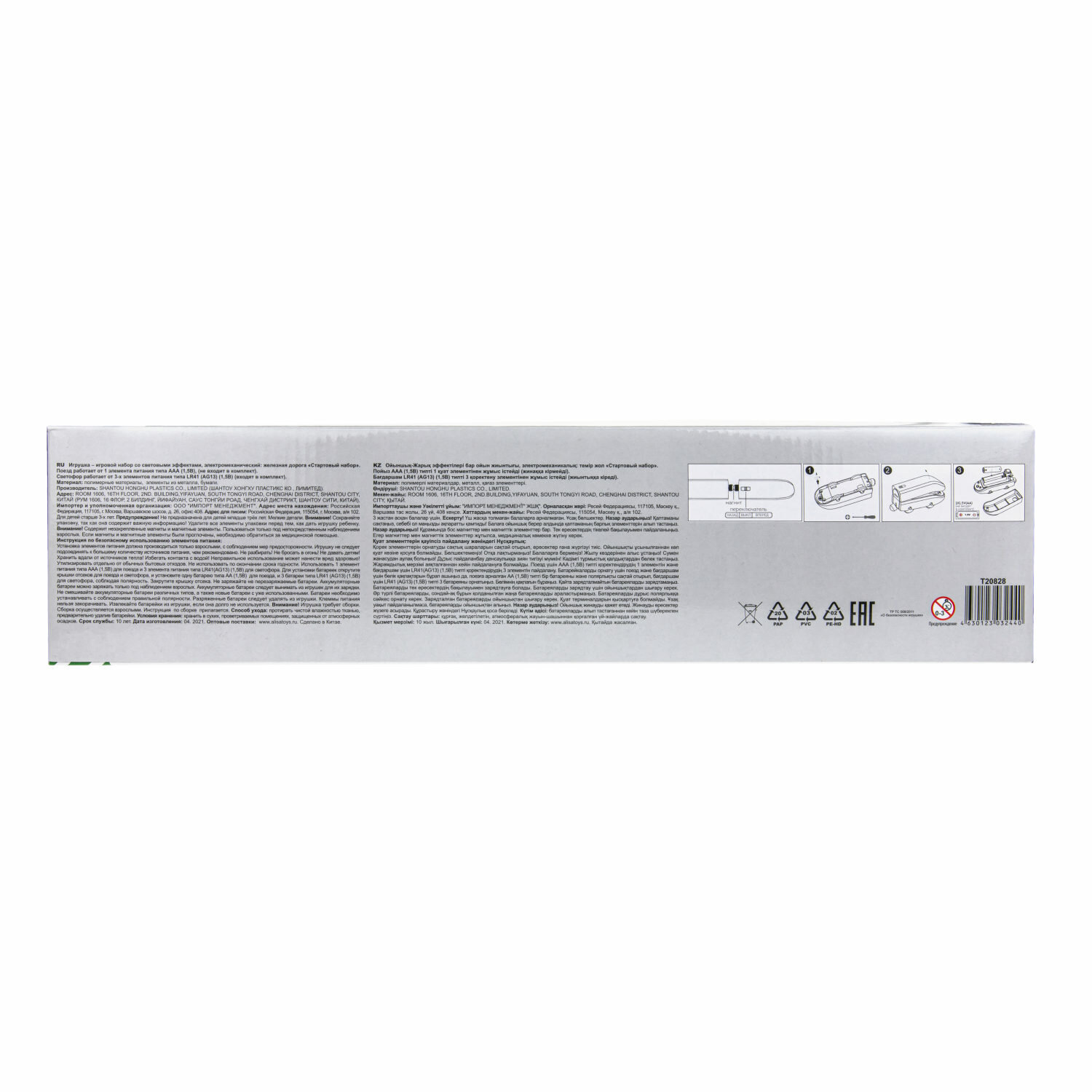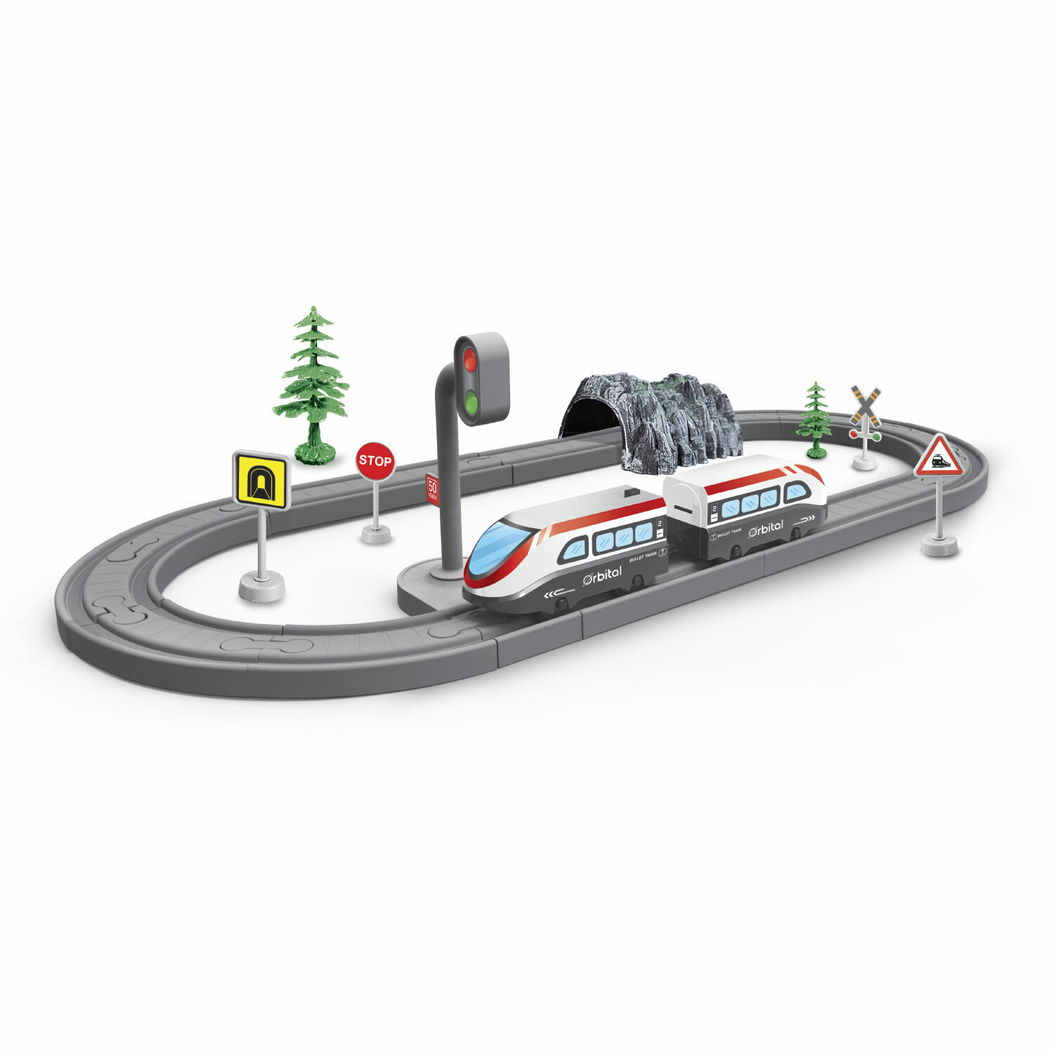| Подробная комплектация | электропоезд с 2 вагонами, туннель, светофор и дорожные знаки, трек |