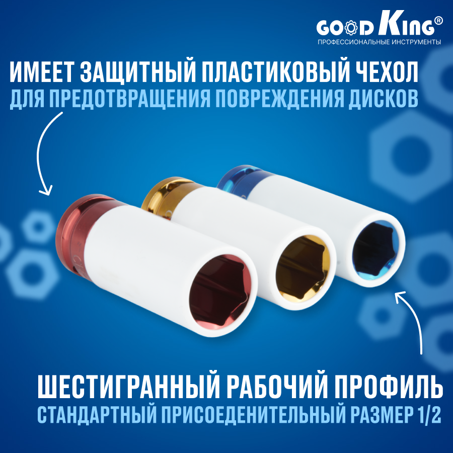 Набор ударных головок для гайковерта GOODKING для литых дисков из Cr-Mo стали, 3 штуки - 17/19/21