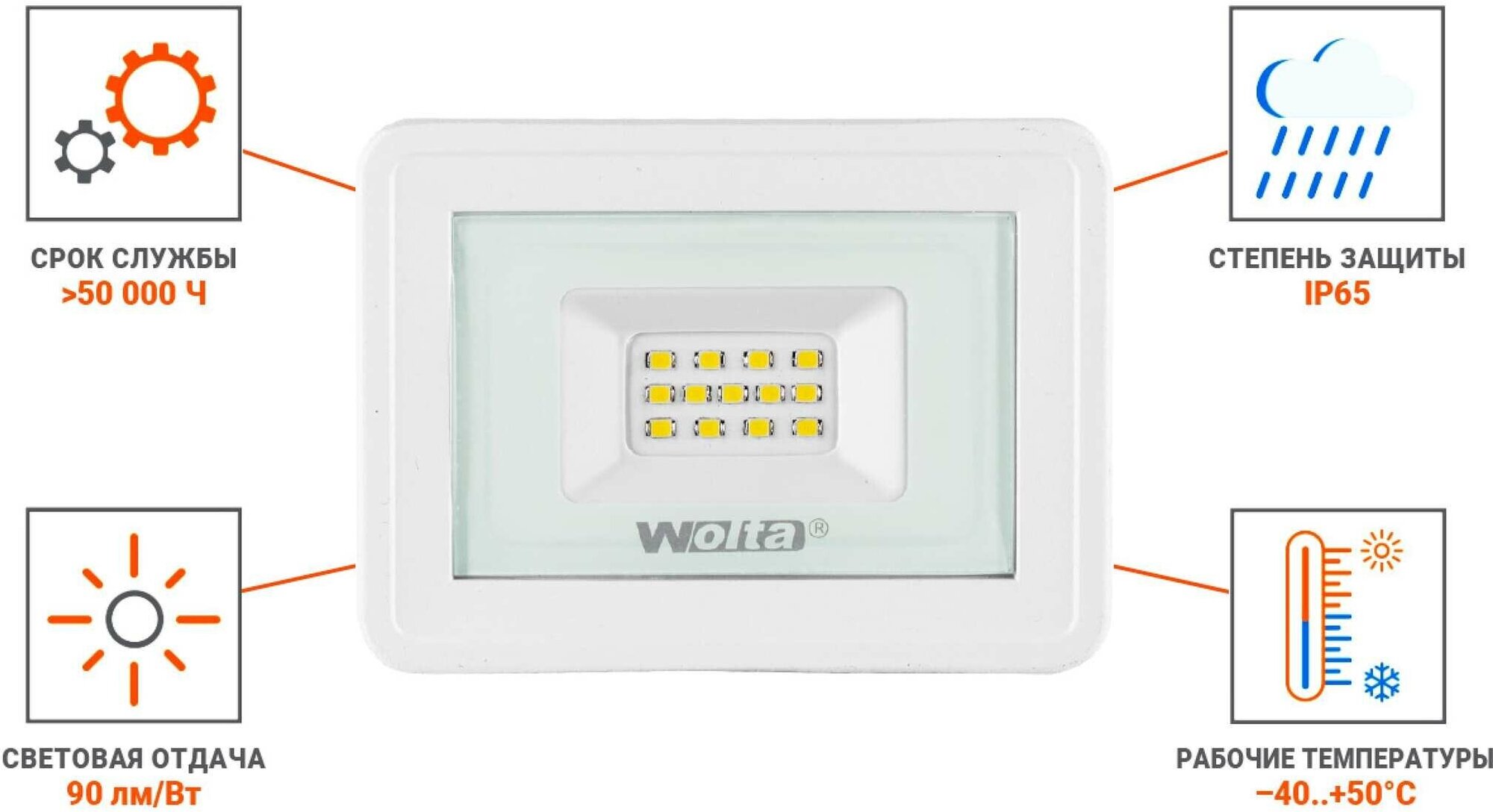 Светодиодный прожектор WOLTA WFL-10W/06W 10Вт 5700К IP65 Белый