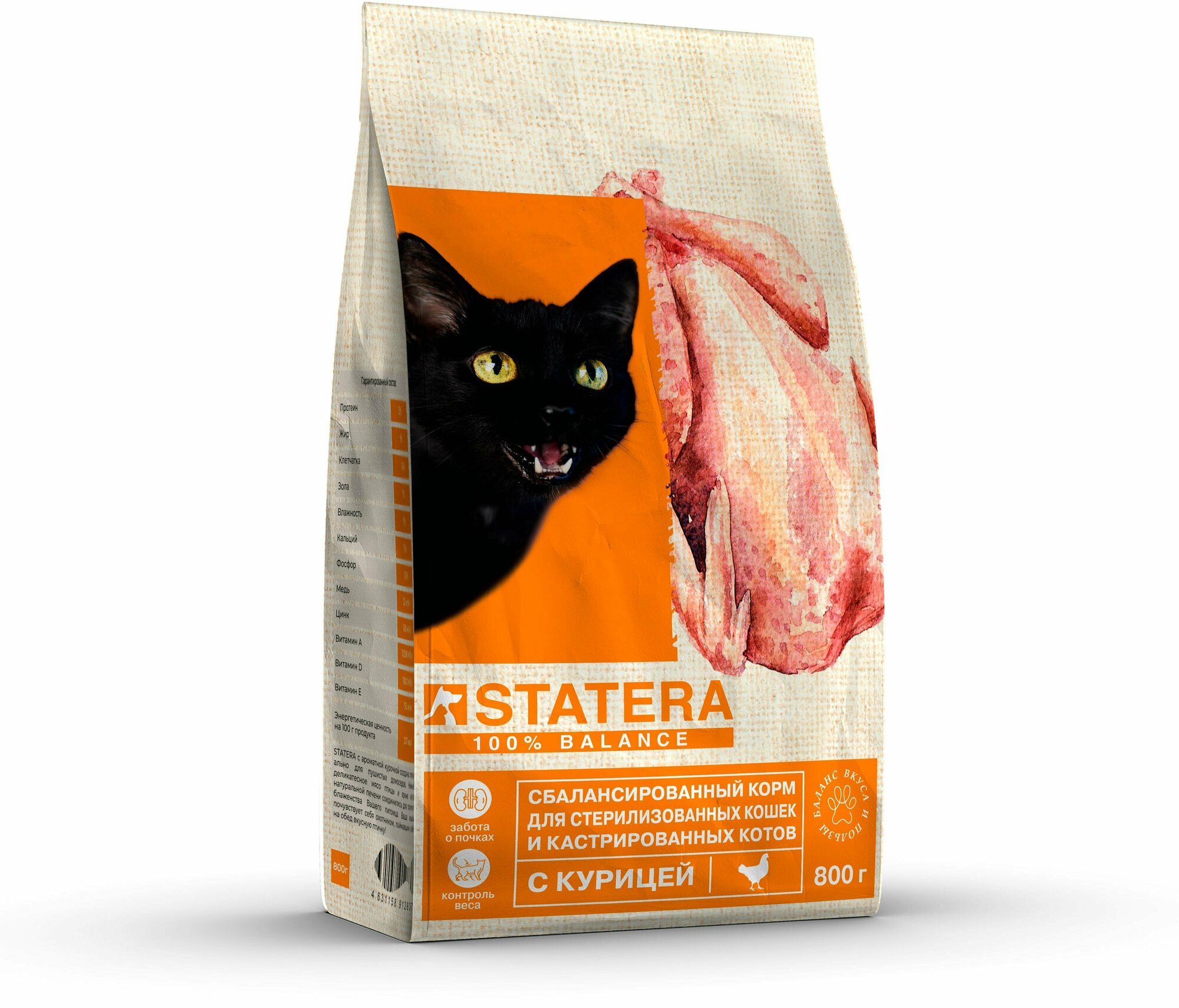 Сухой корм STATERA для взрослых кастрированных котов и стерилизованных кошек с курицей (0,8 кг)