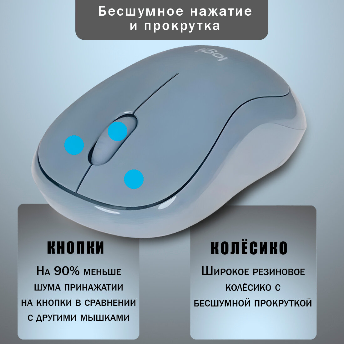Мышь беспроводная Logitech M221 Silent, 1000dpi, Голубой 910-006111