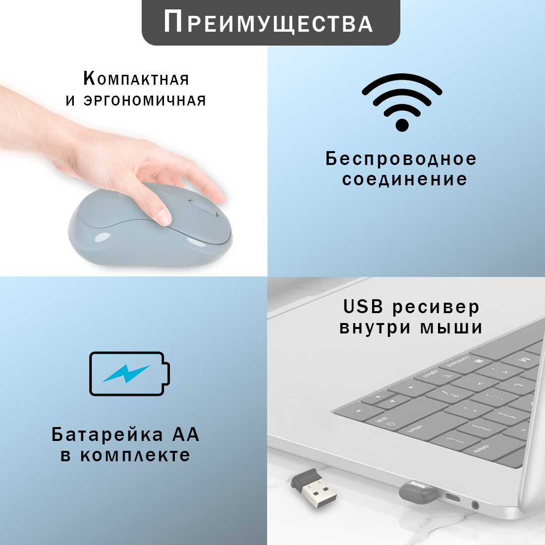 | Дополнительная информация | размер USB ресивера: 18.7 / 23.1 / 6.1 мм, вес 1.8 г; срок службы батареи: 18 месяцев |