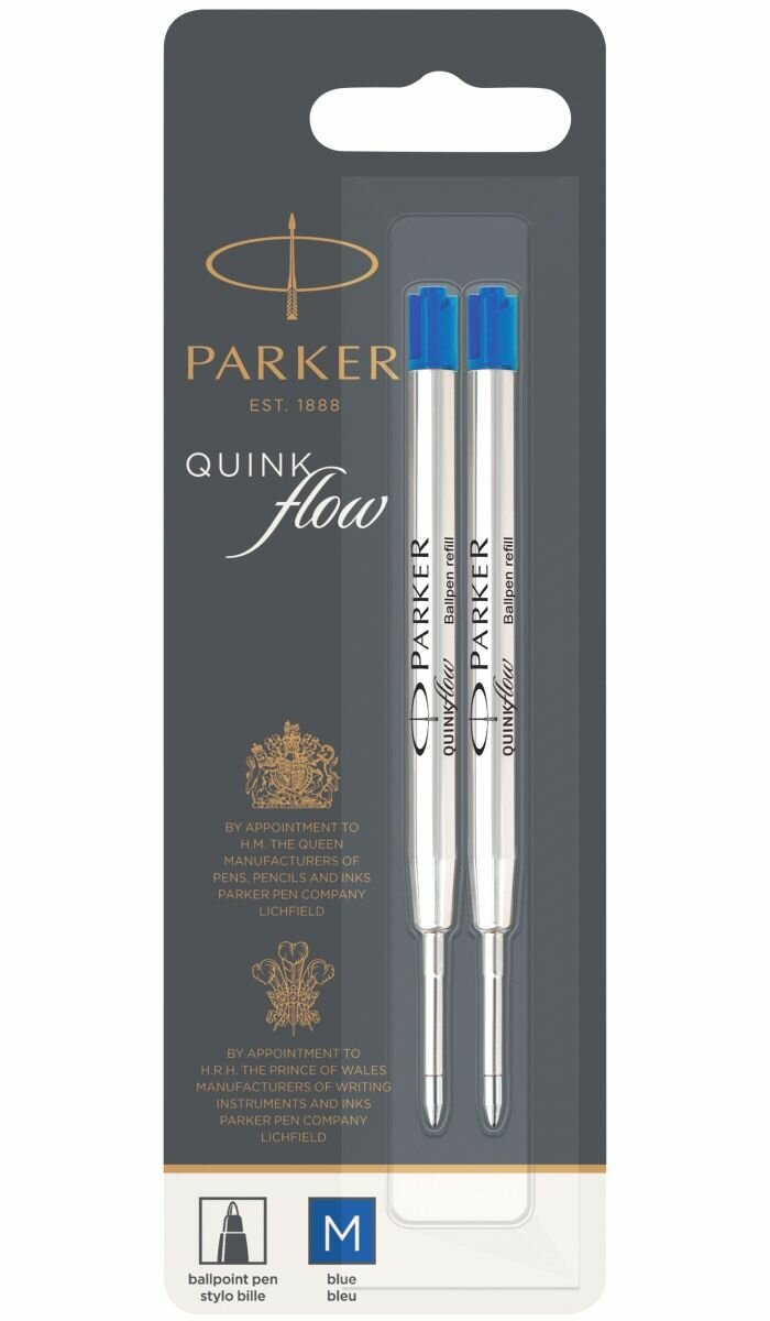 Стержень для шариковой ручки PARKER QuinkFlow Bp Z08 M 1 мм, 98 мм (2 шт.) синий