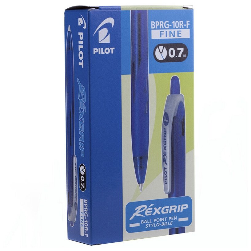 Ручка шариковая масляная автоматическая PILOT "Rex Grip", синяя, узел 0,7 мм, линия письма 0,32 мм, BPRG-10R-F