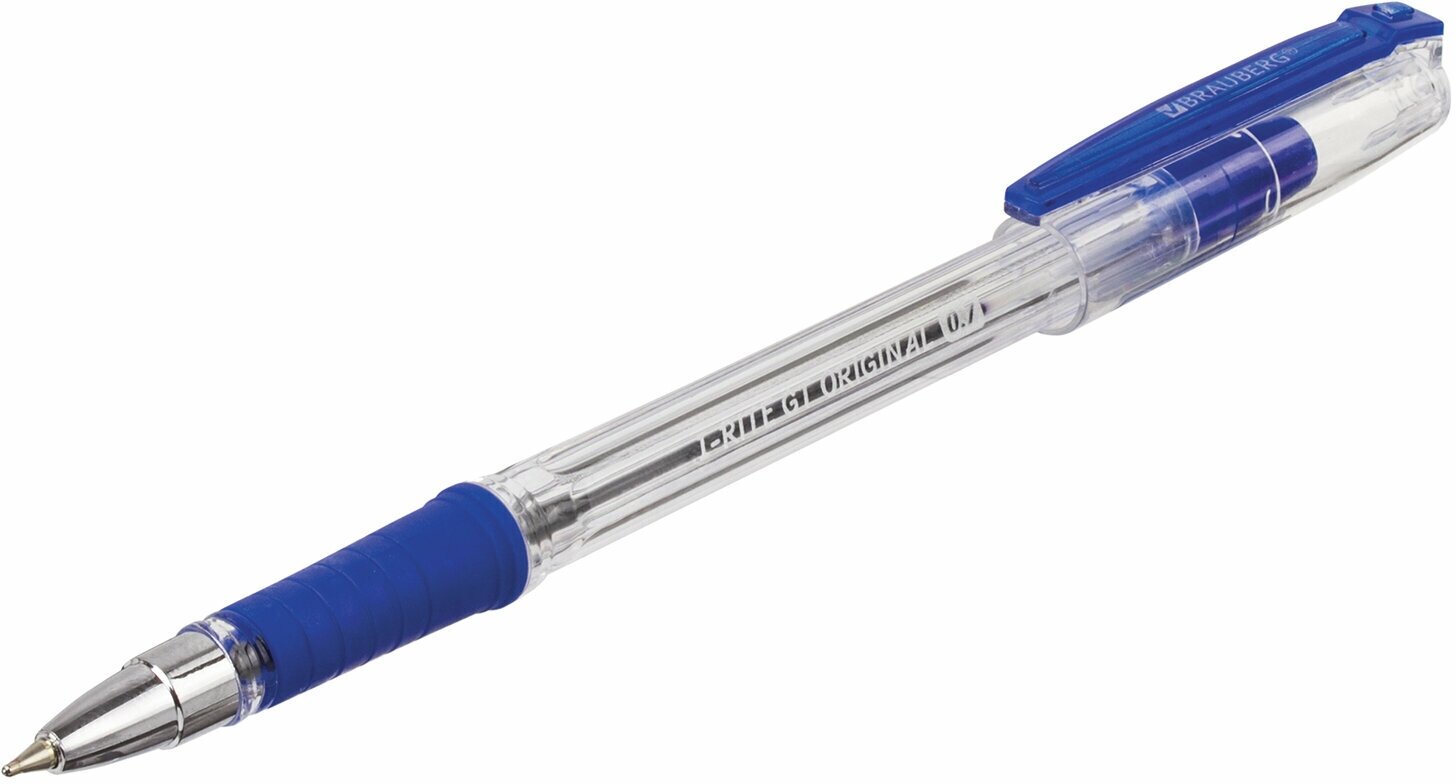 Ручка шариковая масляная с грипом BRAUBERG "i-Rite GT", синяя, корпус прозрачный, узел 0,7 мм, 143300, 24шт в компл.