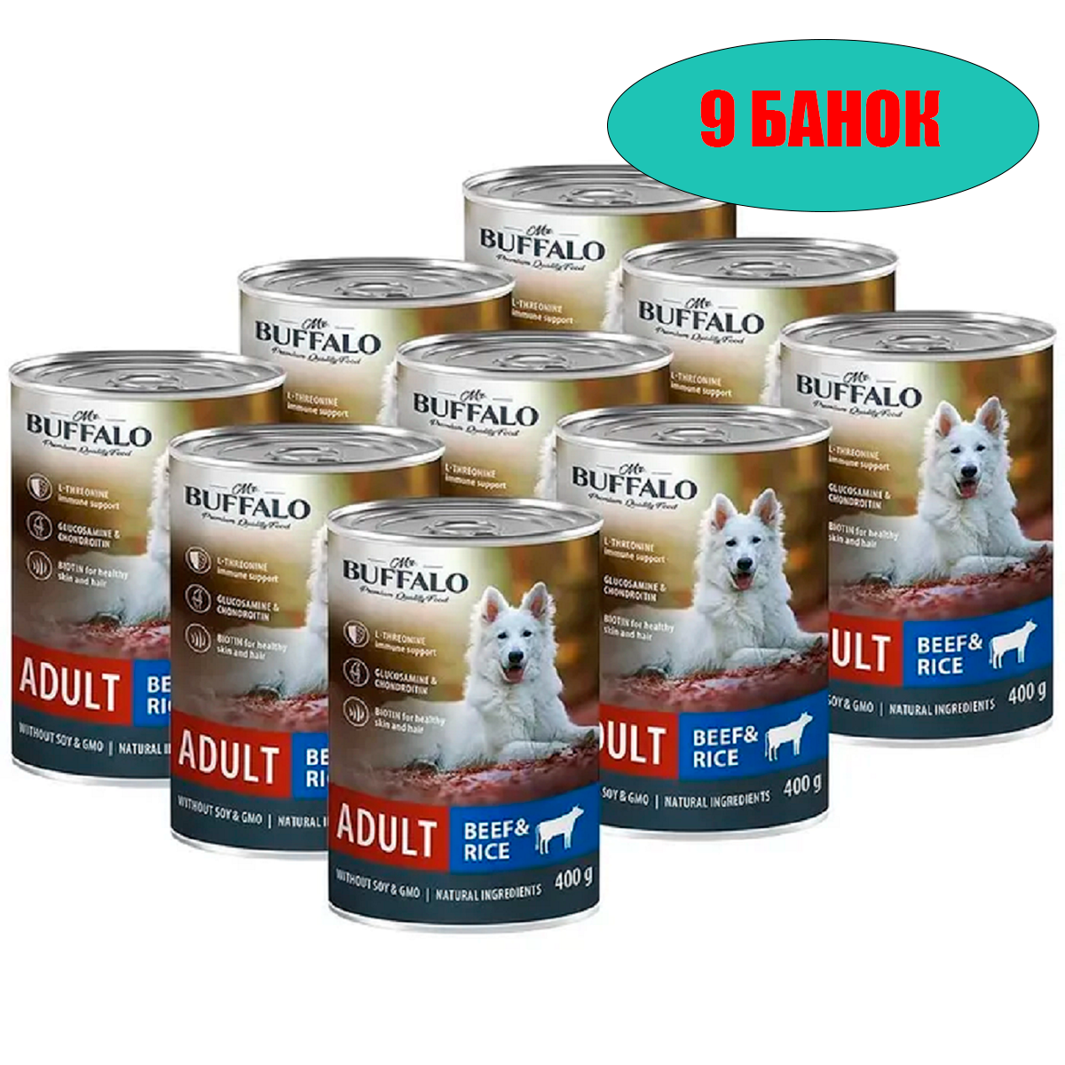 Баффало Mr.Buffalo Adult Dog 9 шт по 400г говядина и рис консервы для собак