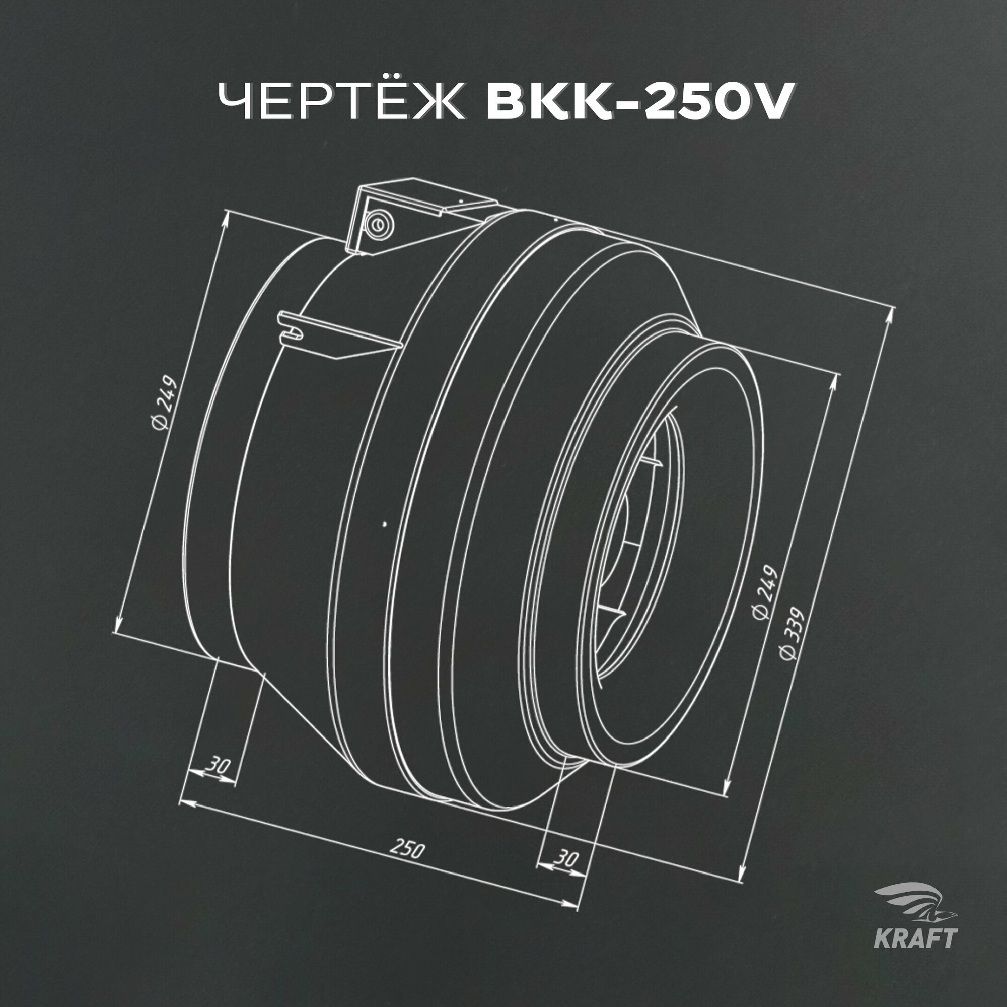 Купить Вентилятор канальный круглый ВКК-250 V, 220В, 1420 м3 в час, 480 Па, 180 Вт, IP 44, для круглых воздуховодов диаметром 250 мм, вытяжной или приточный