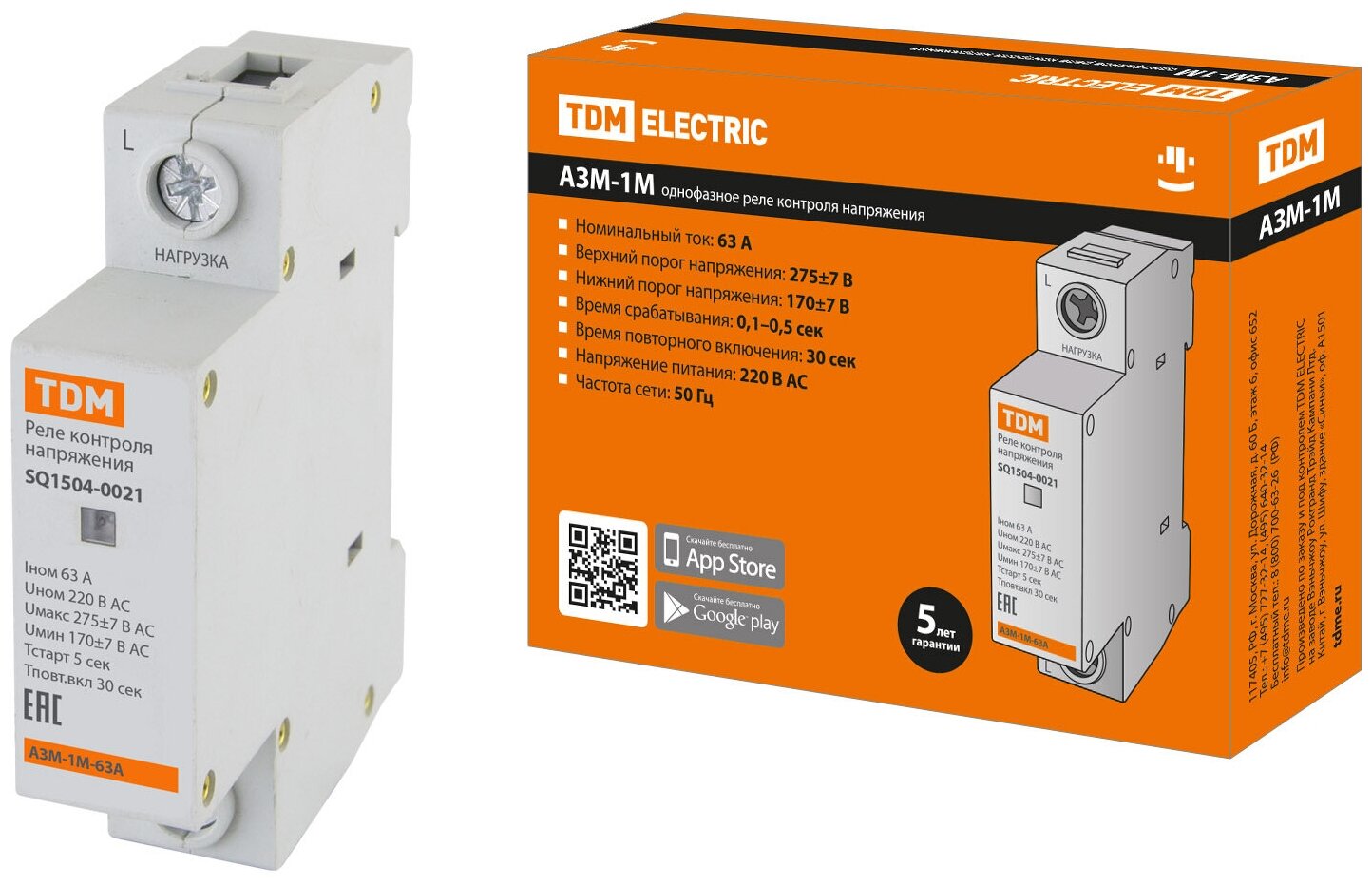 Реле напряжения 1ф серии АЗМ 1-модуль 63А-220В, TDM SQ1504-0021 (1 шт.) интересное: