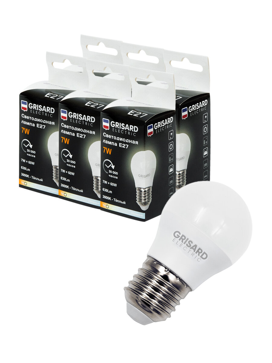 Купить Лампа светодиодная GRISARD ELECTRIC шар G45 E27 7Вт 3000К 220В. 6 штук