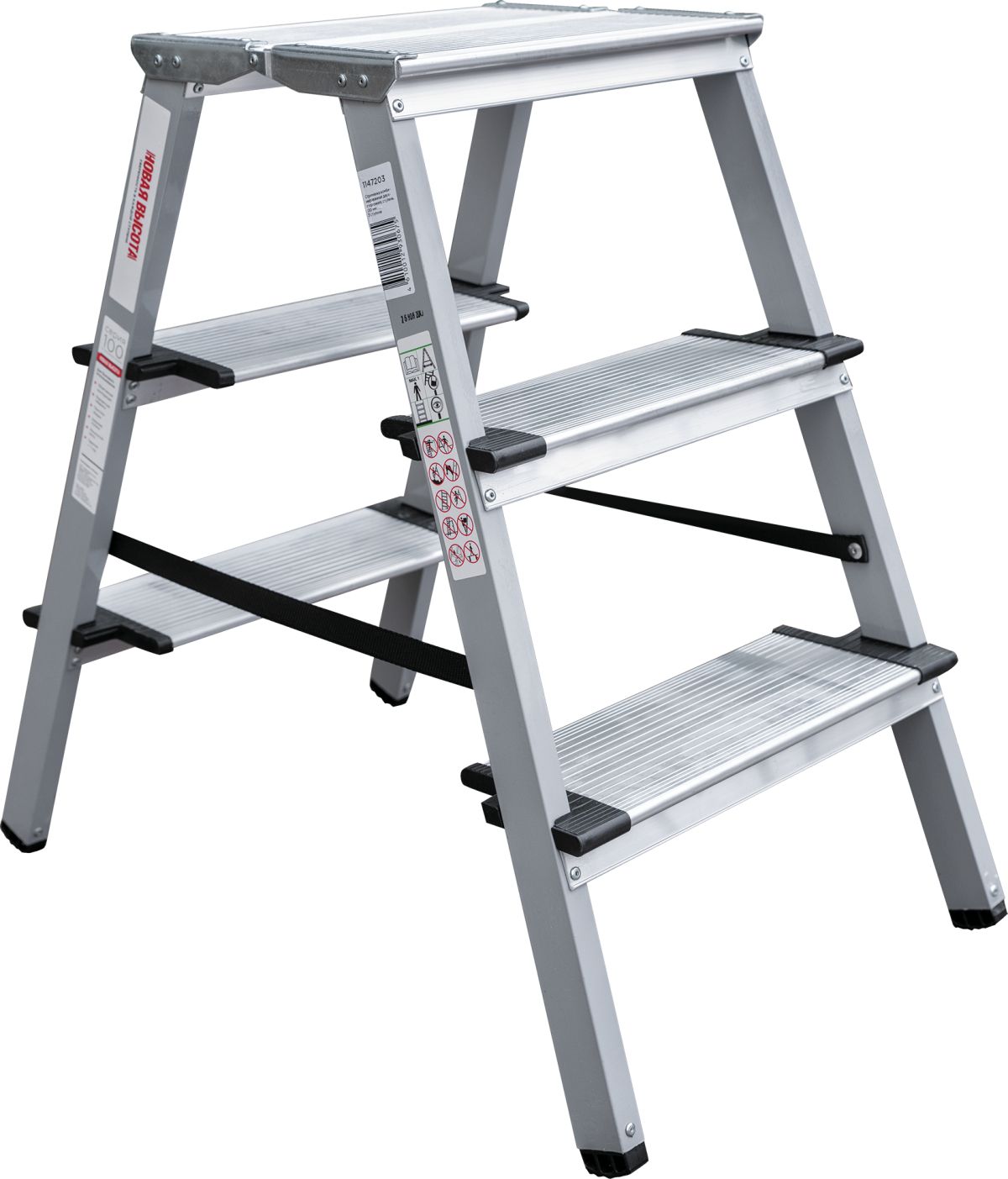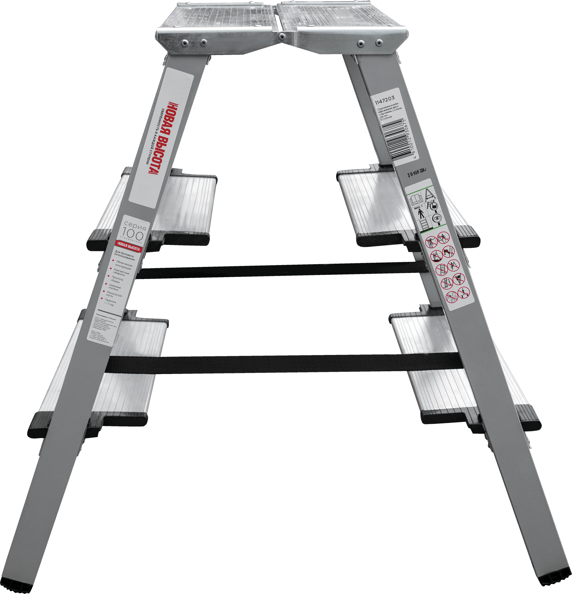 Стремянка стальная с алюминиевыми ступенями двухсторонняя Новая Высота NV 1147, 2х3 ступени 130 мм,