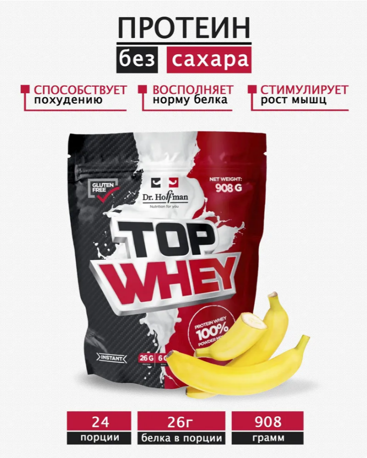 Протеин сывороточный Dr. Hoffman TOP WHEY пакет 908 гр, банан интересное: