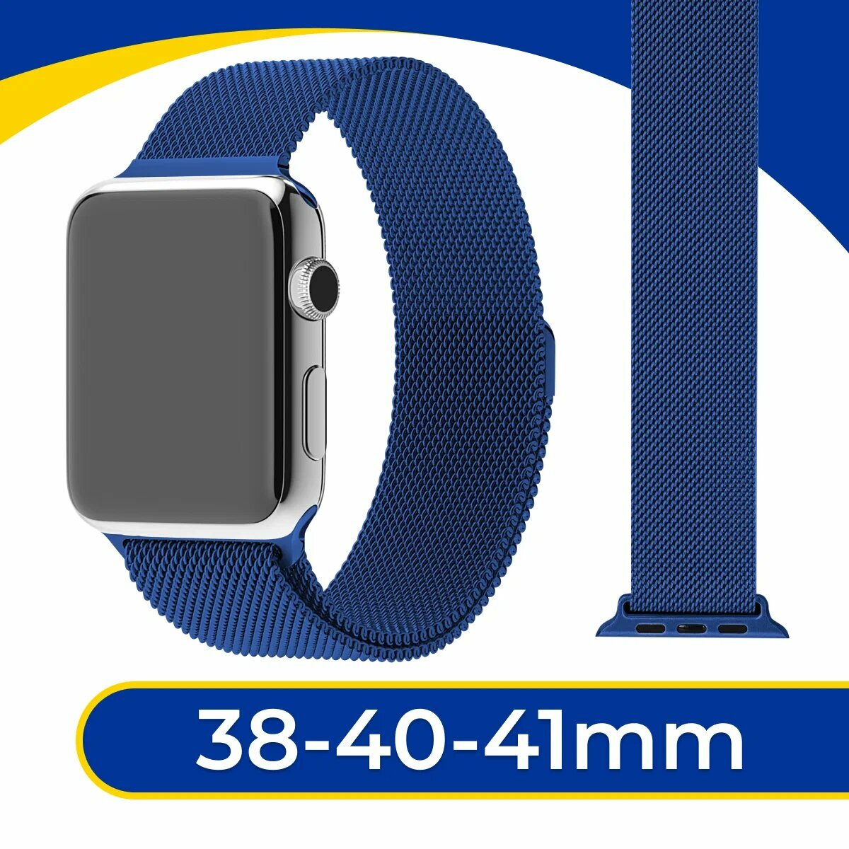 Купить Металлический ремешок на Apple Watch 1-9, SE 38-40-41 мм / Браслет миланская петля для смарт часов Эпл Вотч 1, 2, 3, 4, 5, 6, 7, 8, 9, СЕ / Синий