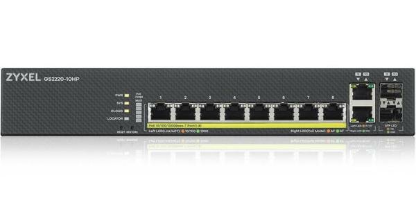 ZyXEL Коммутатор ZYXEL NebulaFlex Pro GS2220-10HP Hybrid L2 PoE+ Switch, 19 "rack, 8xGE PoE+, 2xCombo (SFP / RJ-45), 180W PoE Budget, Standalone / Cloud Management