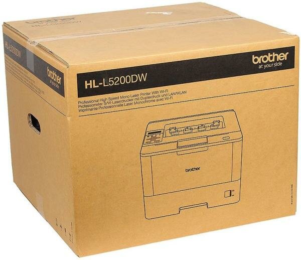 Brother Монохромные лазерные устройства Brother HL-L5200DW, Принтер, ч/б лазерный, A4, 40 стр/мин, 256 Мб, Duplex, LAN, WiFi, USB, старт.картридж 3000 стр.